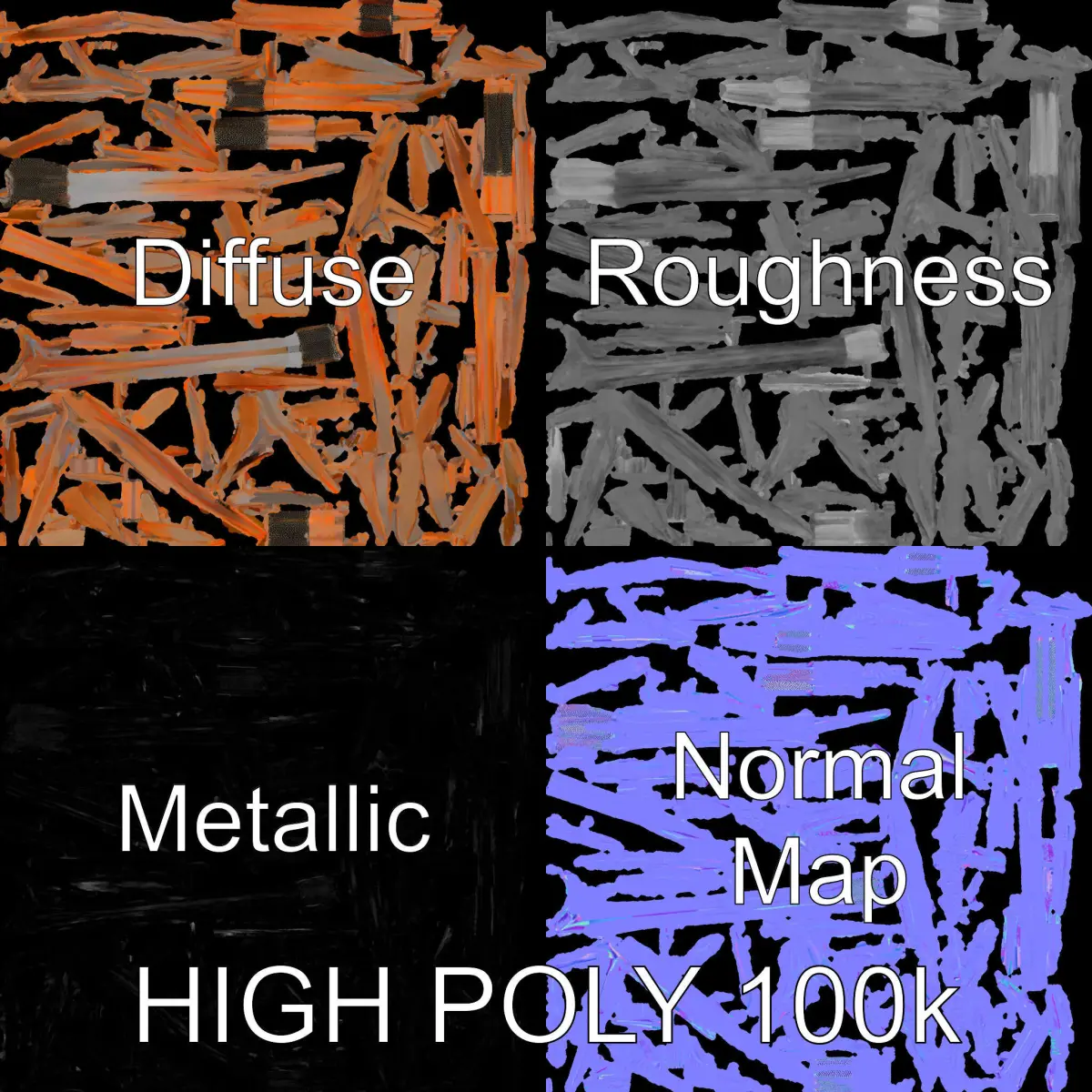 This Cattail Metal Sculptures Model Pack features three levels of detail: suitable for mobile, environment, and high-resolution rendering. Ideal for modern art installations, outdoor garden scenes, and environmental design contexts. The models are unwrapped perfectly without UV overlaps and use PBR textures—Diffuse, NormalMap, and reflection/roughness/metallic—making them compatible with engines like Unity and Unreal. Each texture is 4096x4096 to ensure quality in any rendering scenario. The first image is the reference used for creating the 3D model. It is important to carefully evaluate the quality of the model by examining the preview images that display the topology and polygonal mesh. These previews (WIRE and WEB 3D Preview) clearly demonstrate how accurately the model matches the original reference and how well the geometry has been executed. Enjoy using these models and please like and leave a comment if they met your expectations!