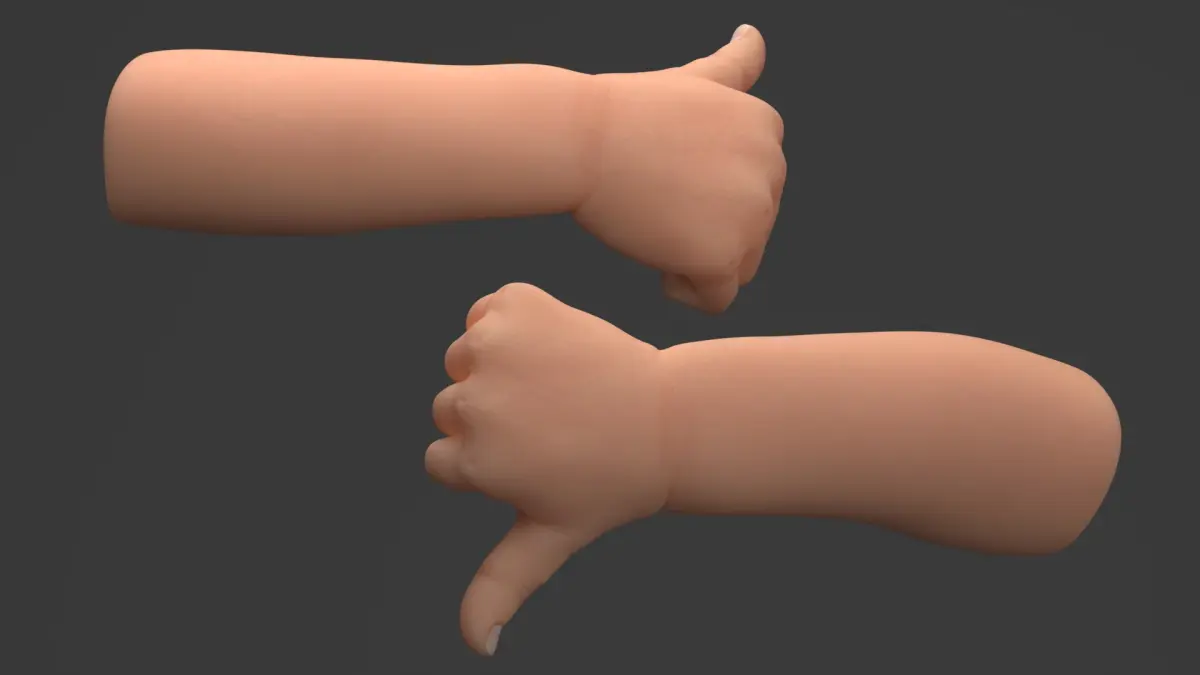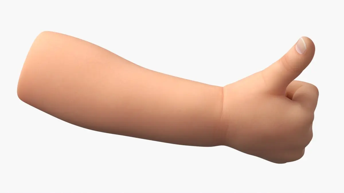 Caucasian Baby Hand Thumbs Up Gesture is a three-dimensional model of hand gesture representing a Caucasian infant's small hand giving a thumbs-up sign.