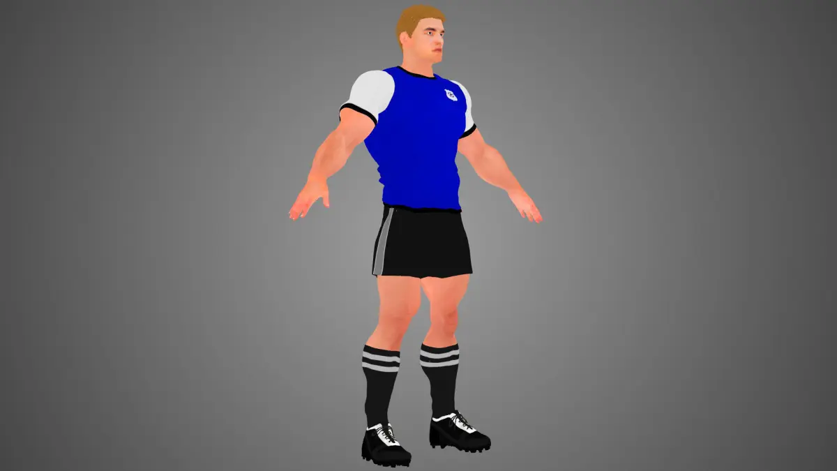 Includes 15 Animations In FBX Format: Walk Forward, Walk In Place, Idle, Soccer Idle, Run Forward, Run in Place, Chip, Offensive Idle, Scissor Kick, Soccer Penalty Kick