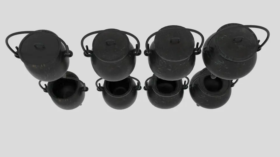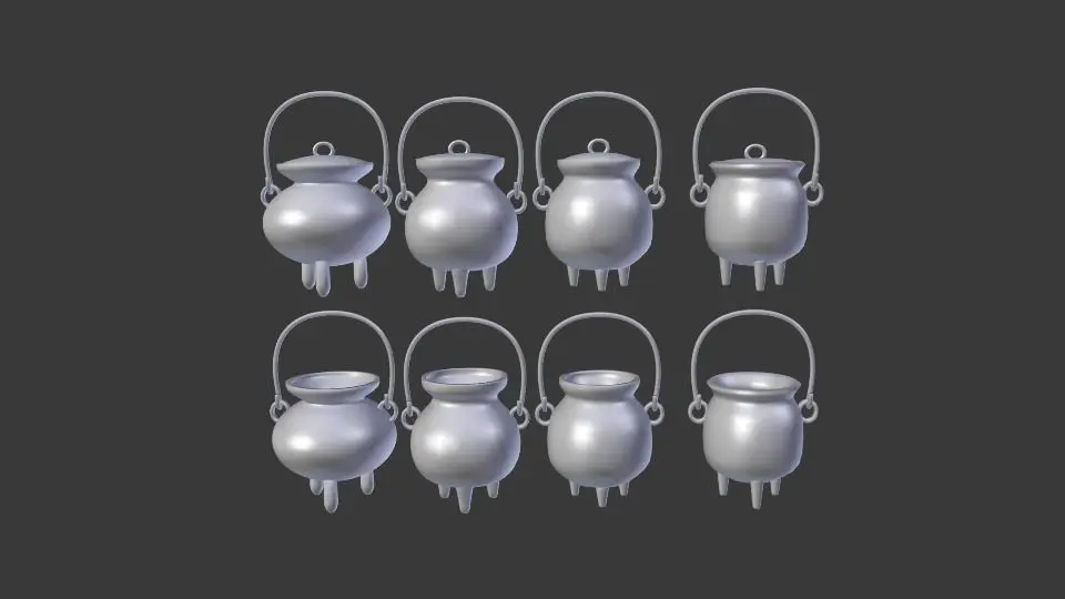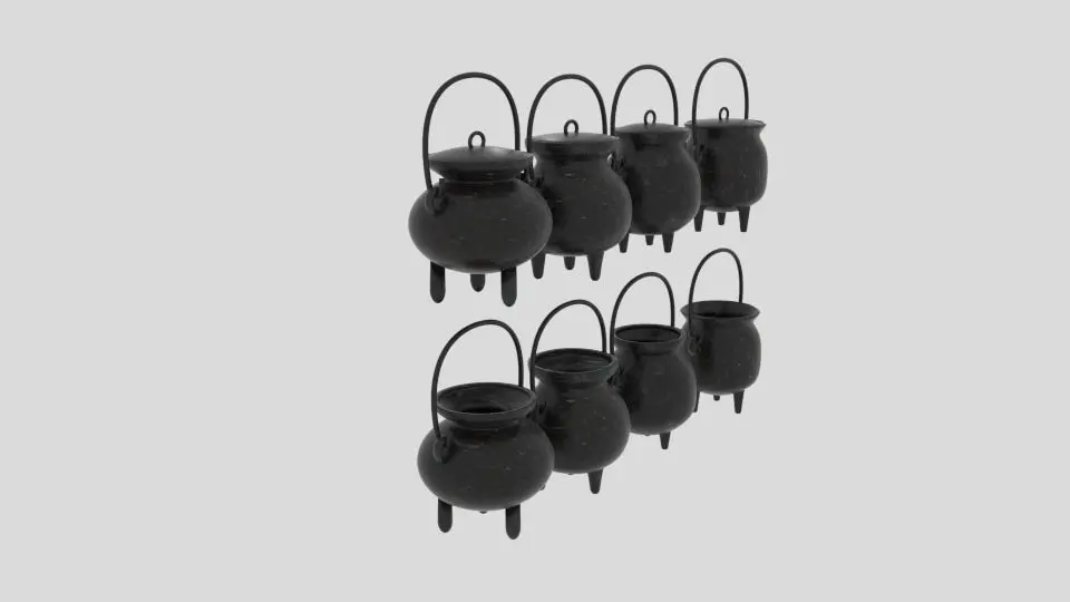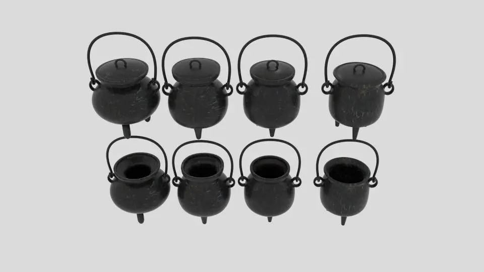 -8 Models of Cauldrons-5 Different file format: Blender(deafult scene), dae, fbx, 3ds, obj-Texture Included-Included Blender Node and Scene-UV Unwrapped-Each Model are separated