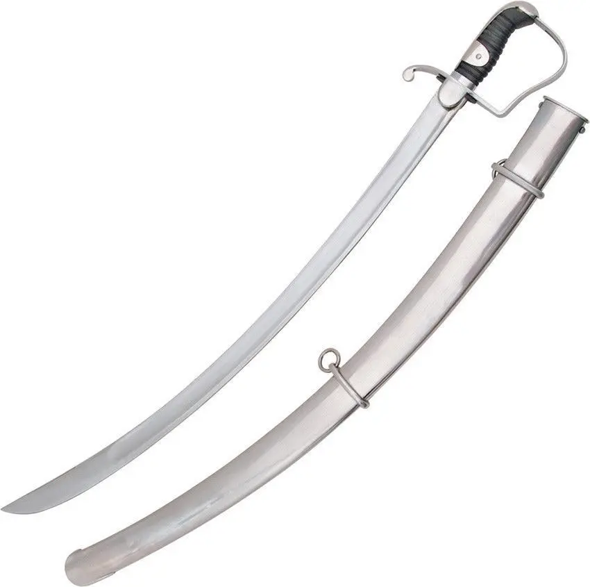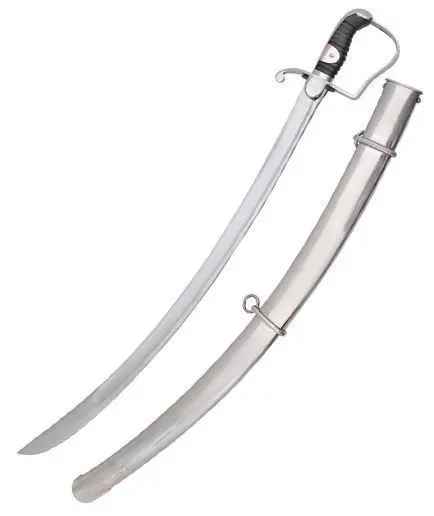 The sabre (British English) or saber (American English) is a type of backsword with a curved blade associated with the light cavalry of the early modern and Napoleonic periods. Originally associated with Central-Eastern European cavalry such as the hussars, the sabre became widespread in Western Europe in the Thirty Years' War. Lighter sabres also became popular with infantry of the late 17th century.In the 19th century, models with less curving blades became common and were also used by heavy cavalry.