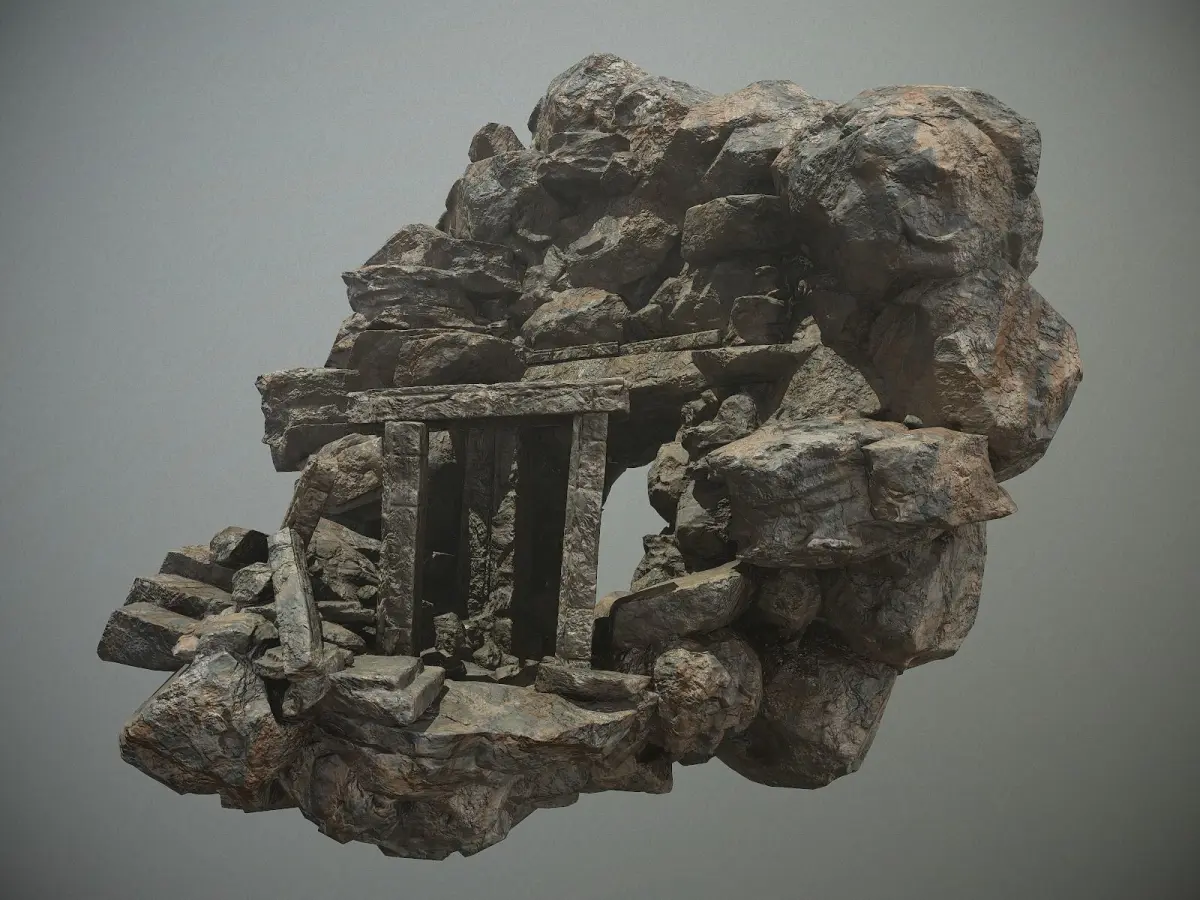 Please note that the back side polygons are culled for optimization purposes, the model is designed to be integrated into a rock wall of some sort.