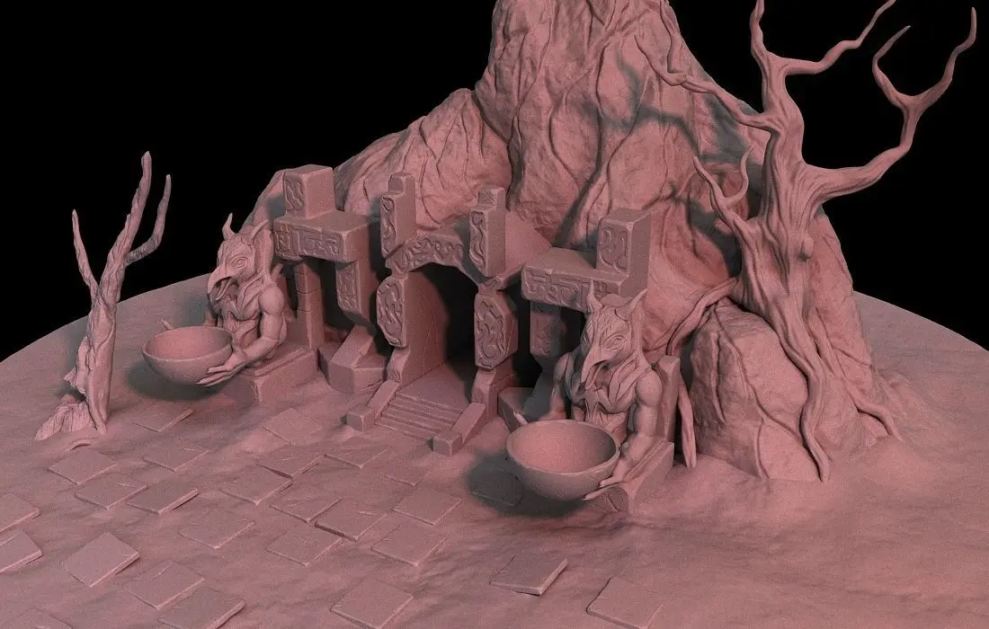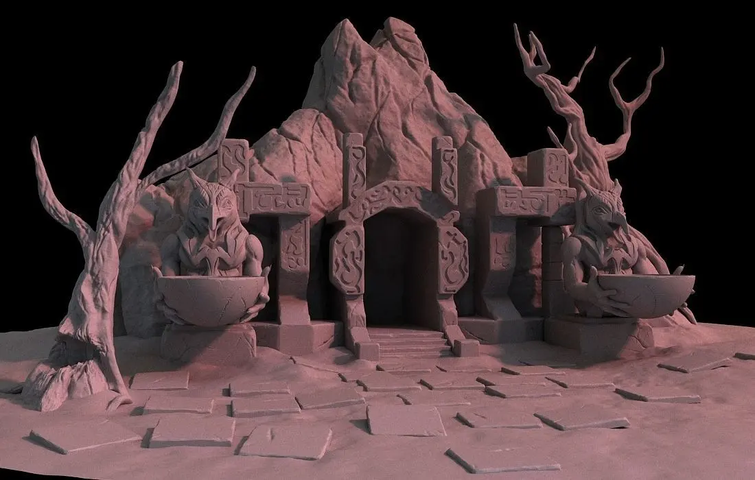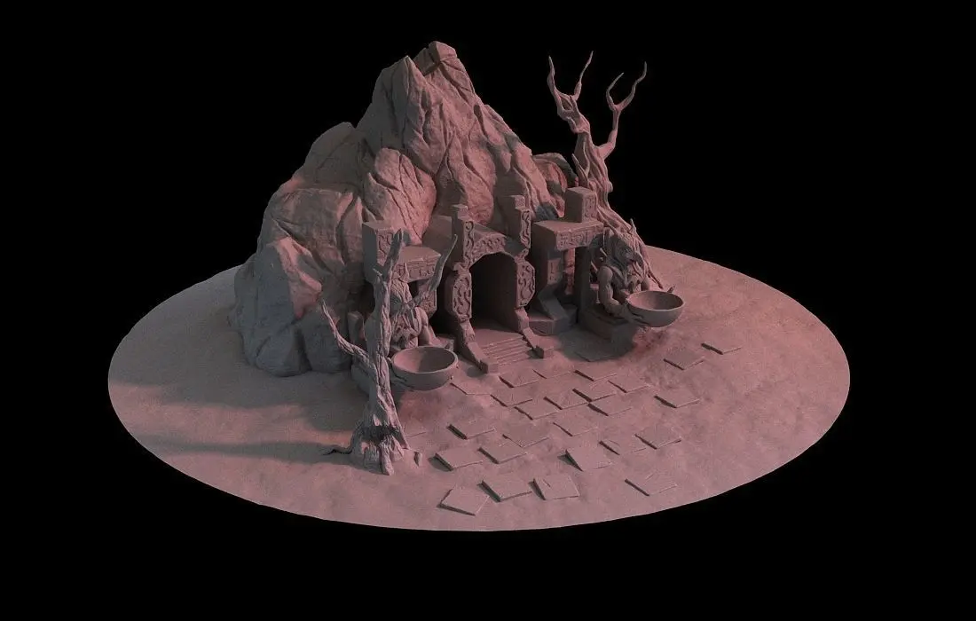 HomeCatalogCave-Entrance model high poly rock in middle of circle 3D model
