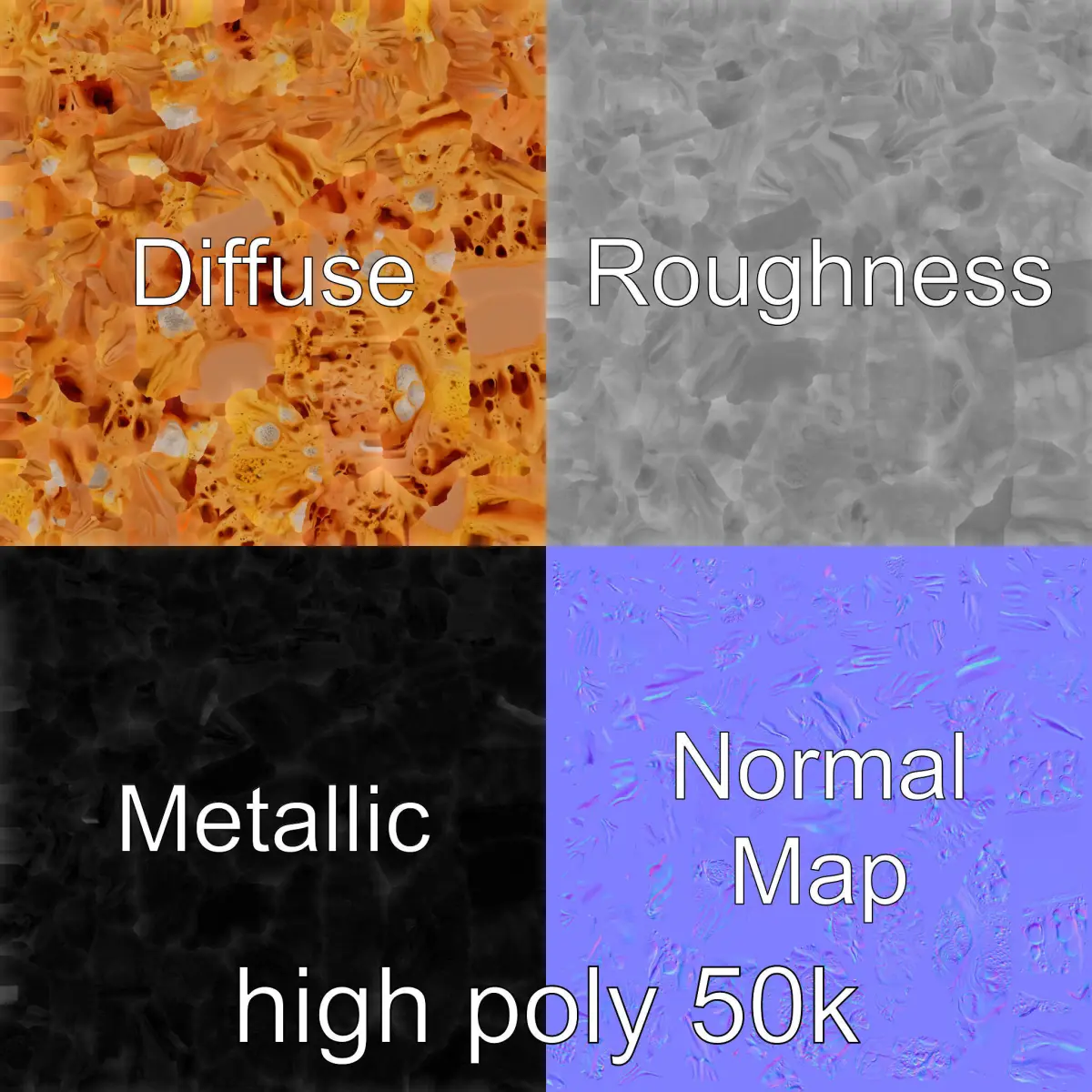 The model's textures are PBR, Diffuse, NormalMap, and reflection/roughness/metallic, which are suitable for any modern rendering engine. All models are accurately unwrapped and have no overlapping UV.