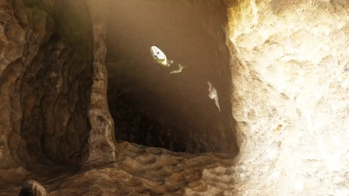 - Connected cave environment with chambers and corridors
