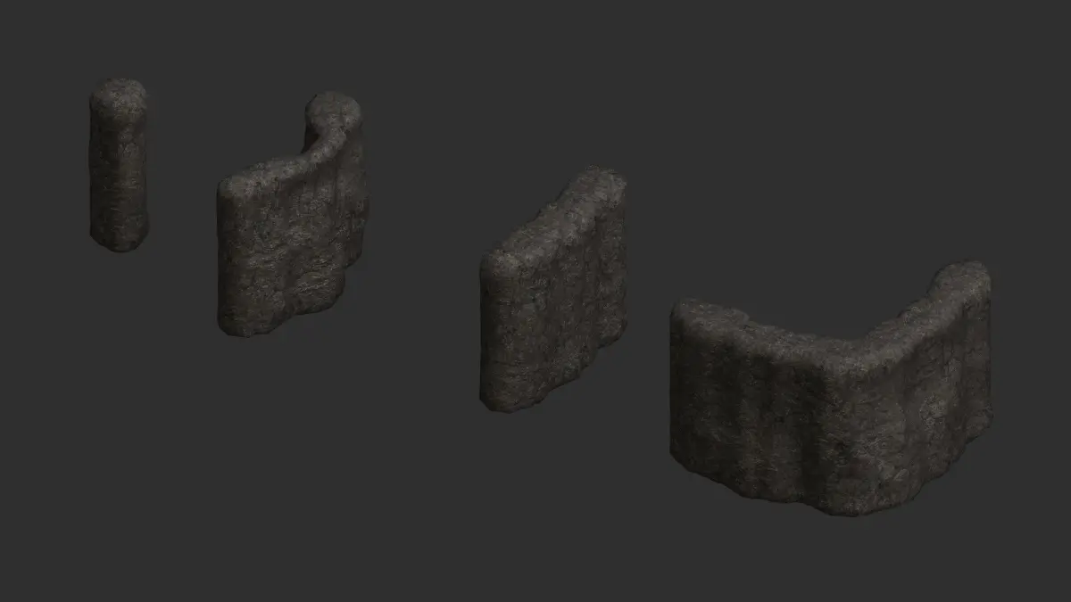 Each set of has its own 2K texture in .png format. Textures have Diffuse, Specular, Height, and Normal maps. The models are low-poly, game-ready, watertight, and can be subdivided. Available formats are 3ds .obj .fbx .blend, and .dae. Previews were rendered in Anim8or. Blender was used for file conversion.