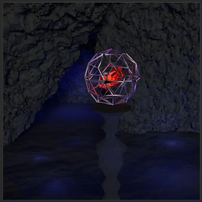 A part of a cave with a relic in it. The model has the precise ground textures for the cave. The shape of the relic in the cage is also natural.