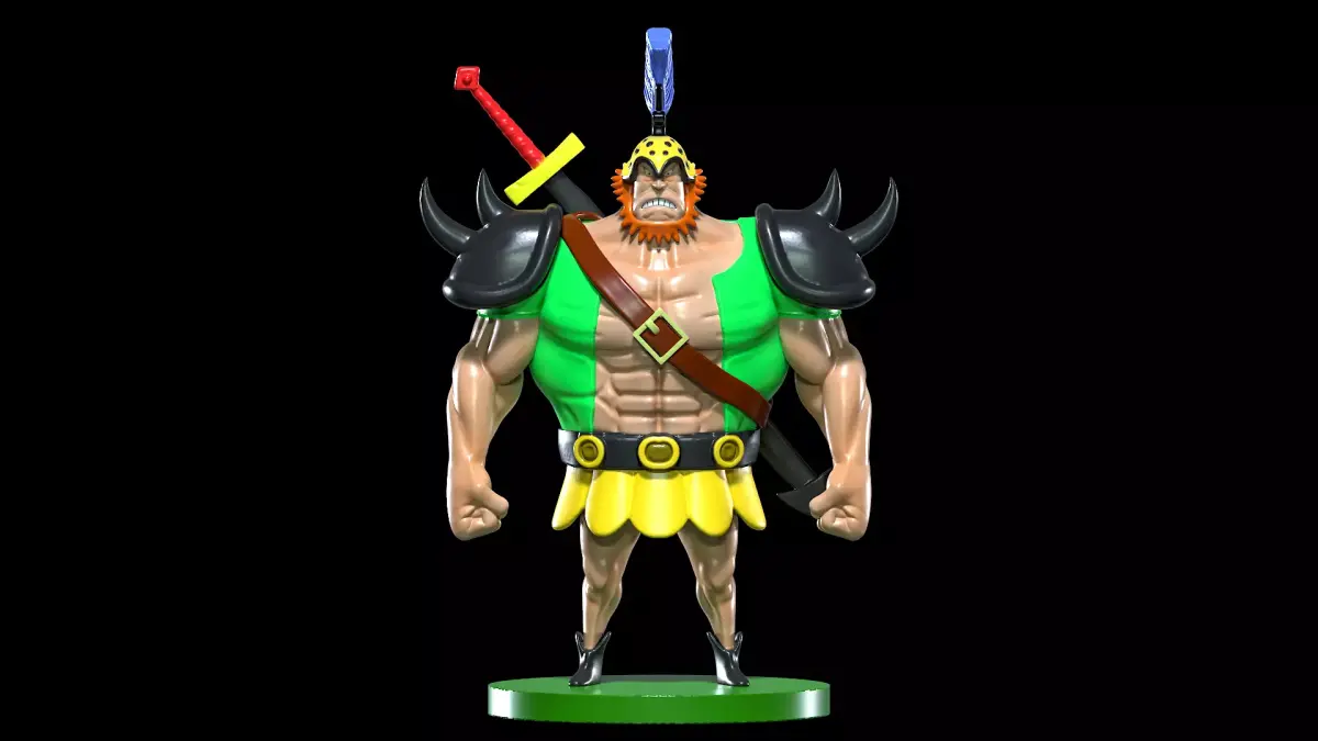 CB Gallant was a member of the Roger Pirates until the crew's dissolution. His current whereabouts and status are unknown.Gallant is large, very muscular with broad shoulders, long arms, and very short legs. He has a large jaw, small eyes, and a short beard. He wears a dark-colored vest, spiked shoulder plates, light-colored gloves, a light-colored colored skirt, and light-colored shoes. He also wears a light-colored helmet with a large forward-bending plume on the top.