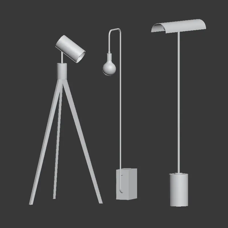 The file contains: -CB2 - 5 Floor Lamps Set 3-Astronomy floor lamp-Crane floor lamp-Duomo brushed gold floor lamp-Lectura antique bronze floor lamp size-Marble floor lampMaterials: Brass, Bronze, Black, Gold, White, Opaque, MilkyPlace of use -living room / dining room / lounge / kitchen / Bedroom / bar, cafe, restaurant / hotel and hotel /.Archive Contains: -3dmax 2012Vray 3.20.02CoronaMap.objThanks