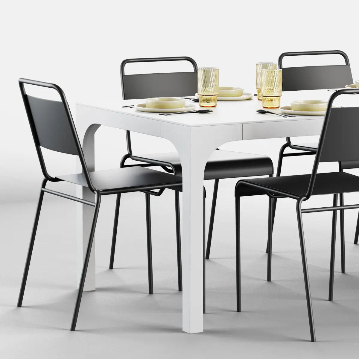 CB2 Aqua Virgio Dining table withCB2 Lucinda Stacking black chair