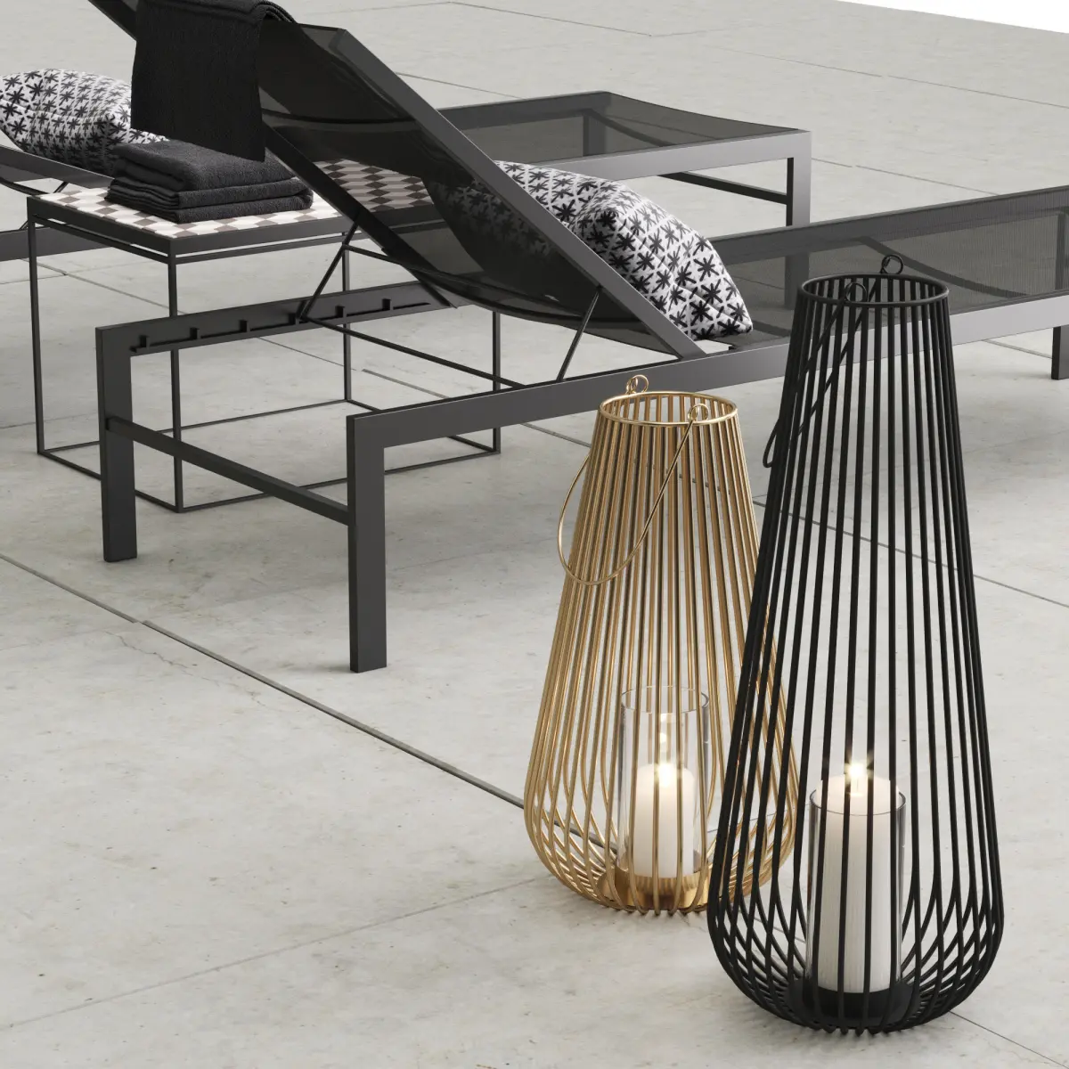 CB2 idle black sun lounger set