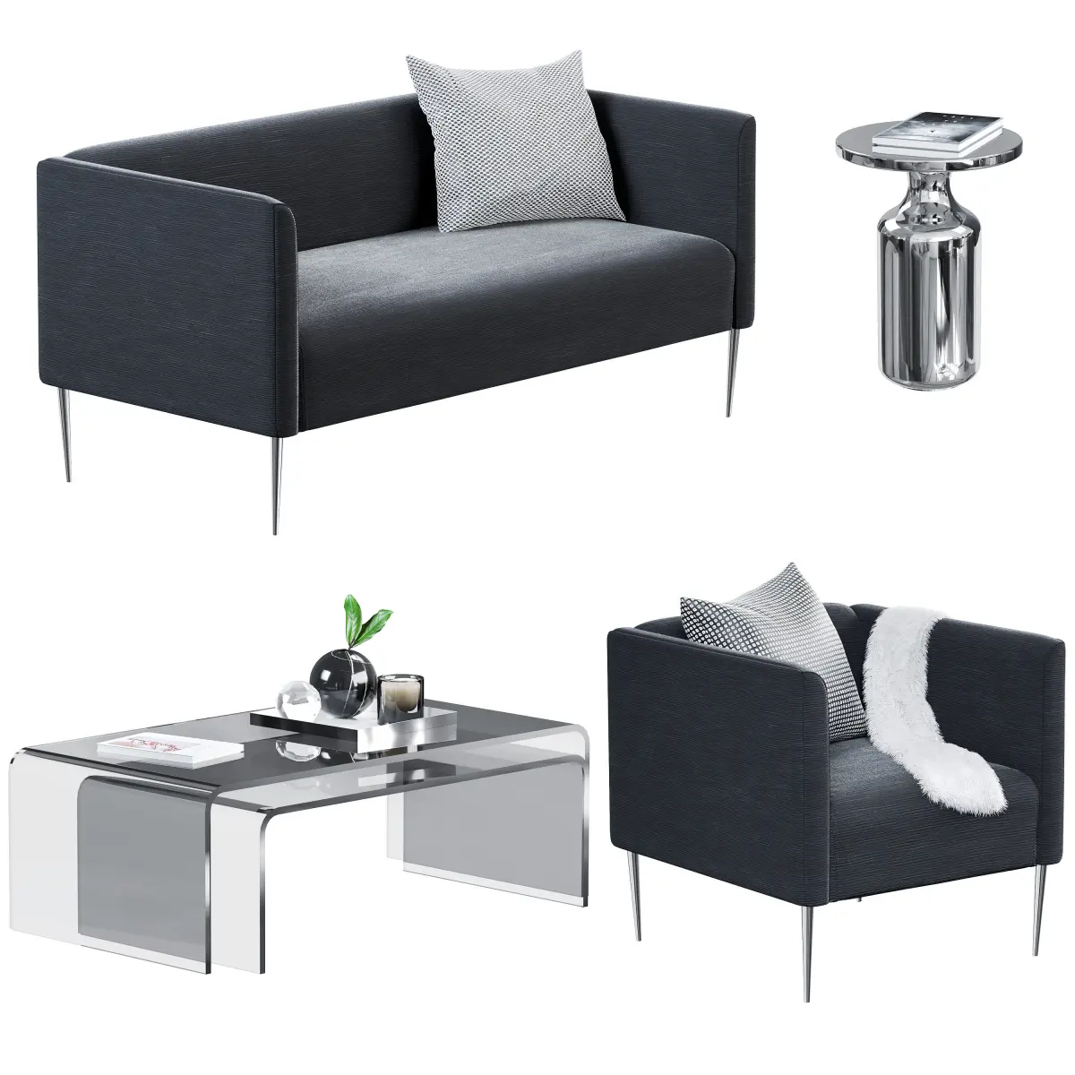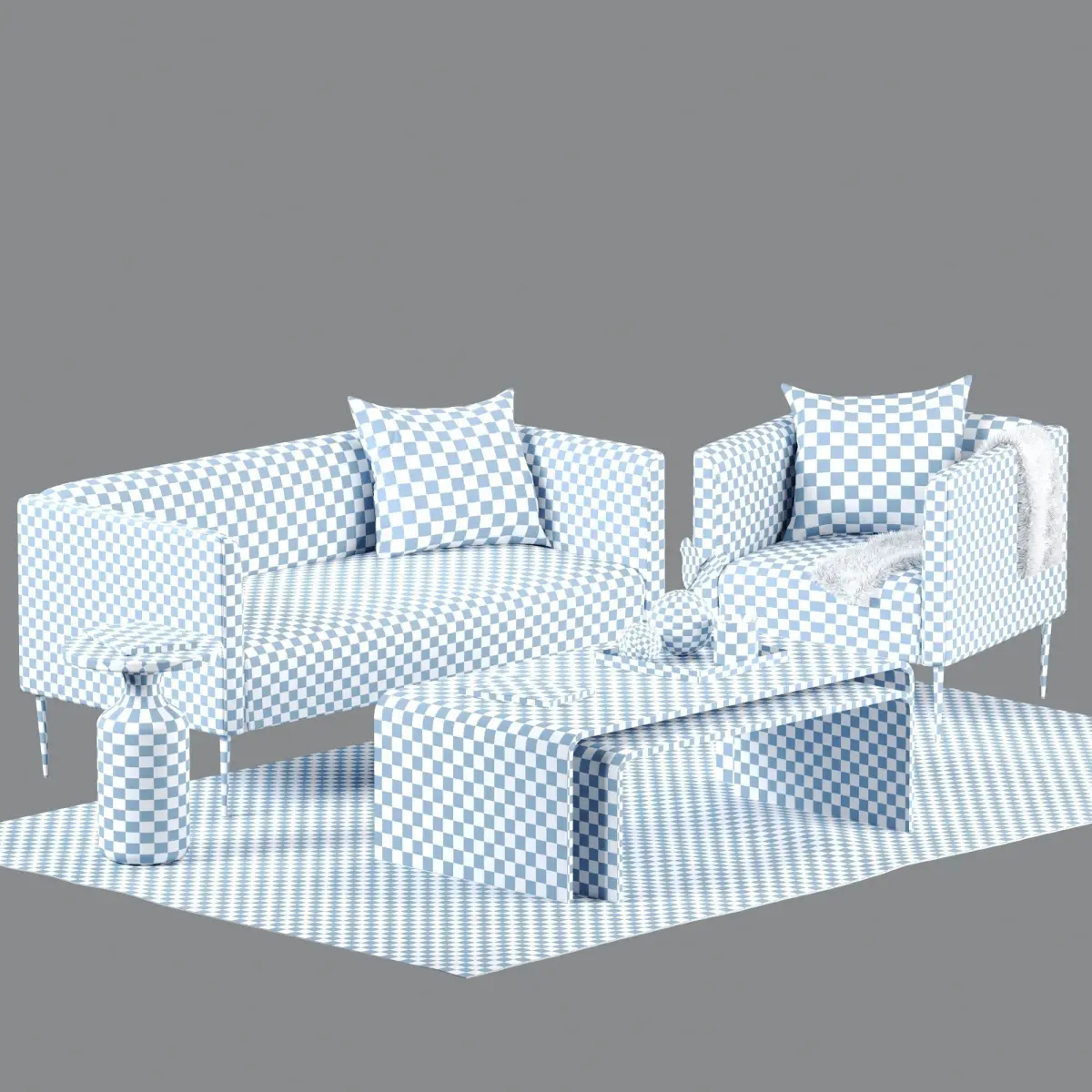 Realistic 3D model of a furniture living set from CB2 that includes: