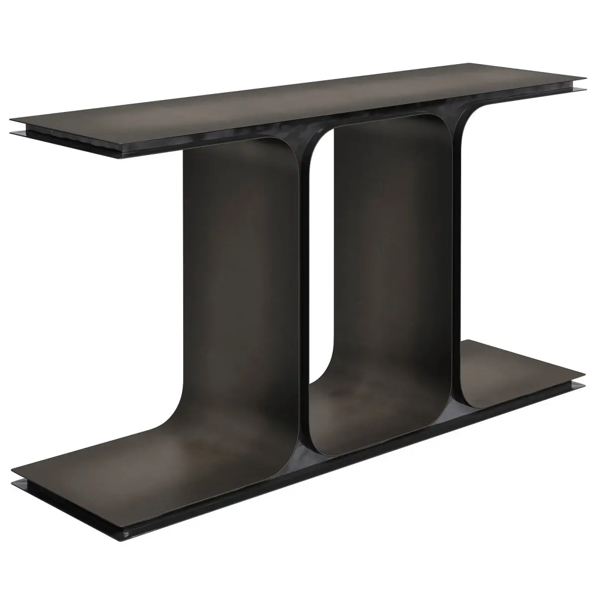 The model is assembled for subdivision. When using import formats, please apply MeshSmoth/TurboSmoth with 2-3 iterations.https://www.cb2.com/ipsilon-black-metal-console-table-53.25/s685148Ipsilon Black Metal Console Table 53.2553.25Wx15Dx29.25HThe steel console table from German design duo hettler.tüllmann features an oxidized zinc finish that gives the piece a vintage, industrial feel. Dark enamel accents inside create a striking contrast. CB2 exclusive.