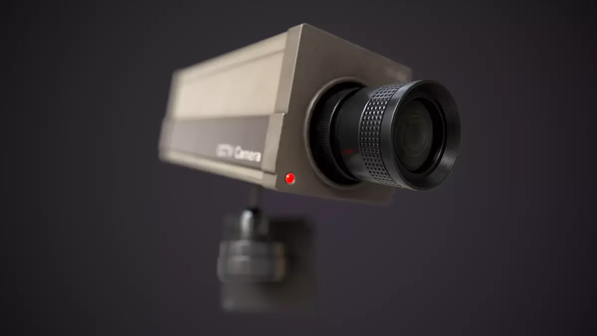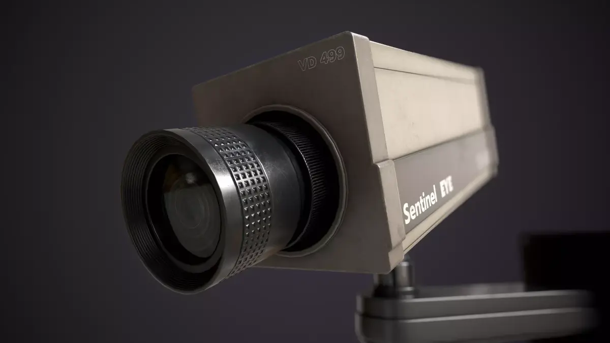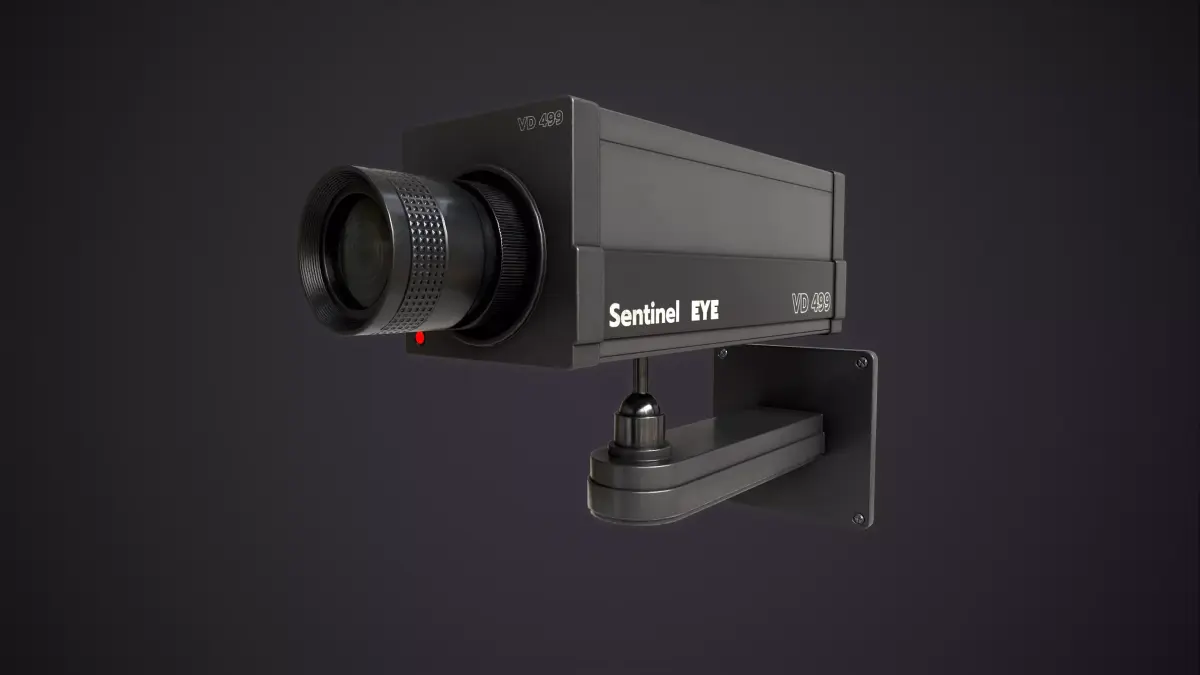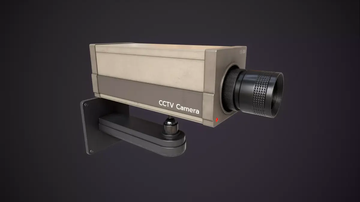 This model represents a 1980s style industrial CCTV camera. It features a rectangular body with