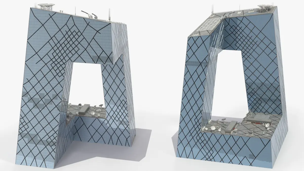 CCTV Television Headquarters Tower is a three-dimensional model of loop-shaped CCTV Headquarters that is an iconic skyscraper known for its distinctive shape and modern architectural style.