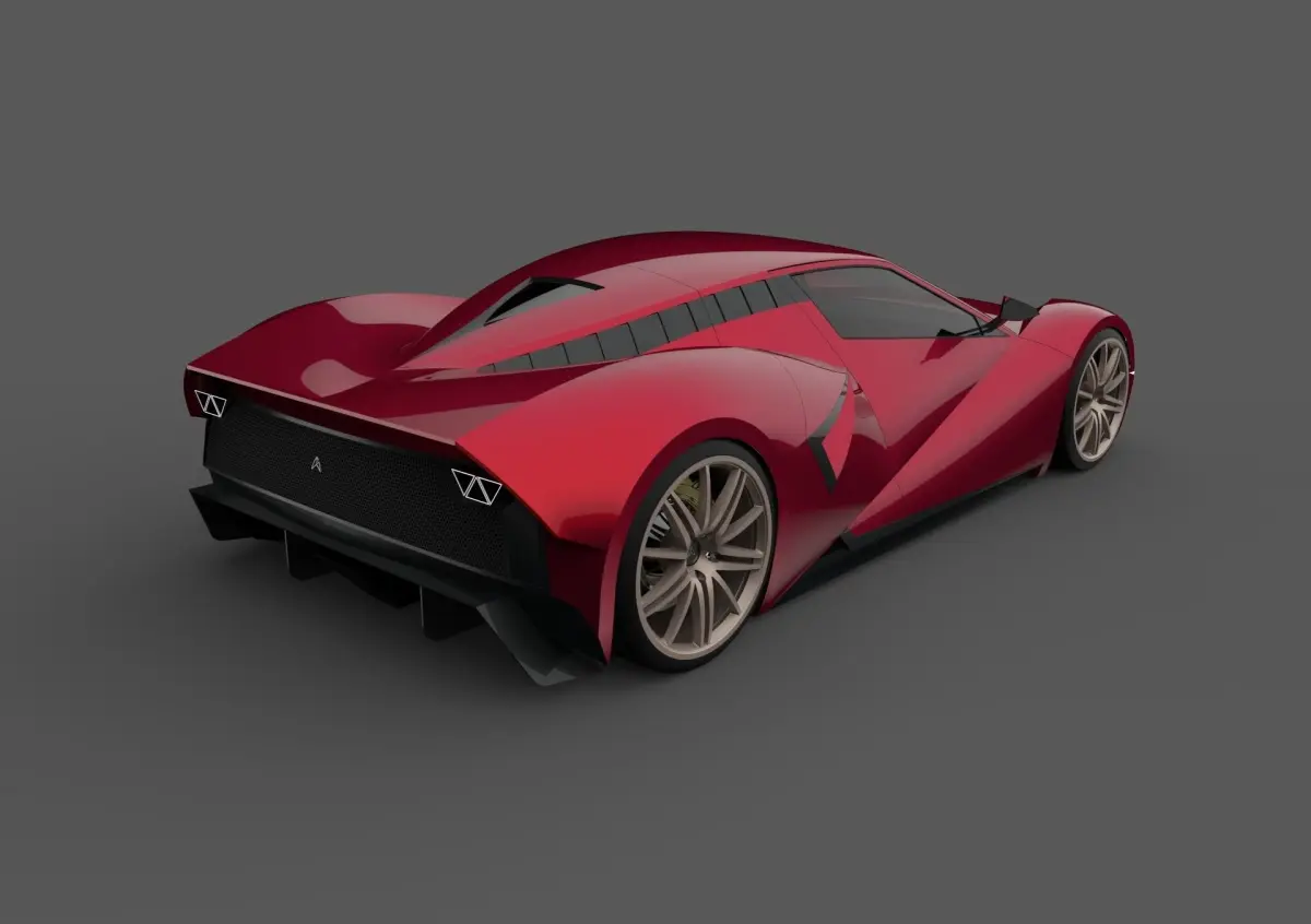 conceptual supercar, with defined lines and contours, and simplicity of lines, adopting a fluid and dynamic style, the shark-style front is aggressive and with its lights embedded in the grill, front and rear led lights, ground effect system so as not to have the need of aileron.