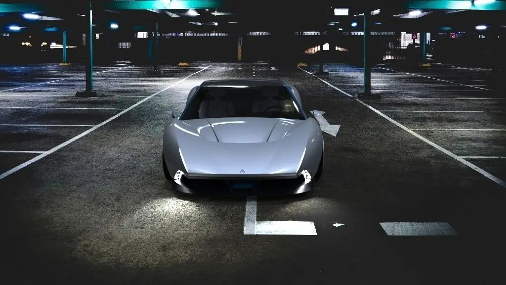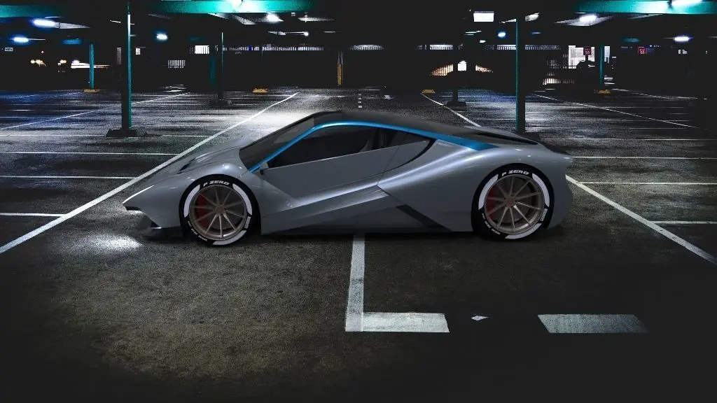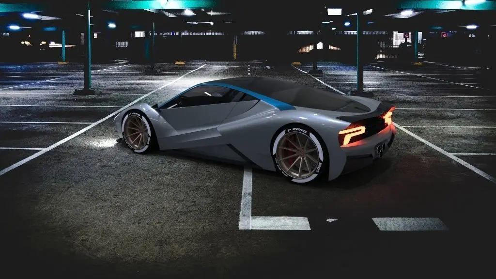 Concept sports vehicle, with angular and curved shapes, giving dynamism and sportiness, design inspired by sports cars from the 70s and 80s , but with all the technology of today.