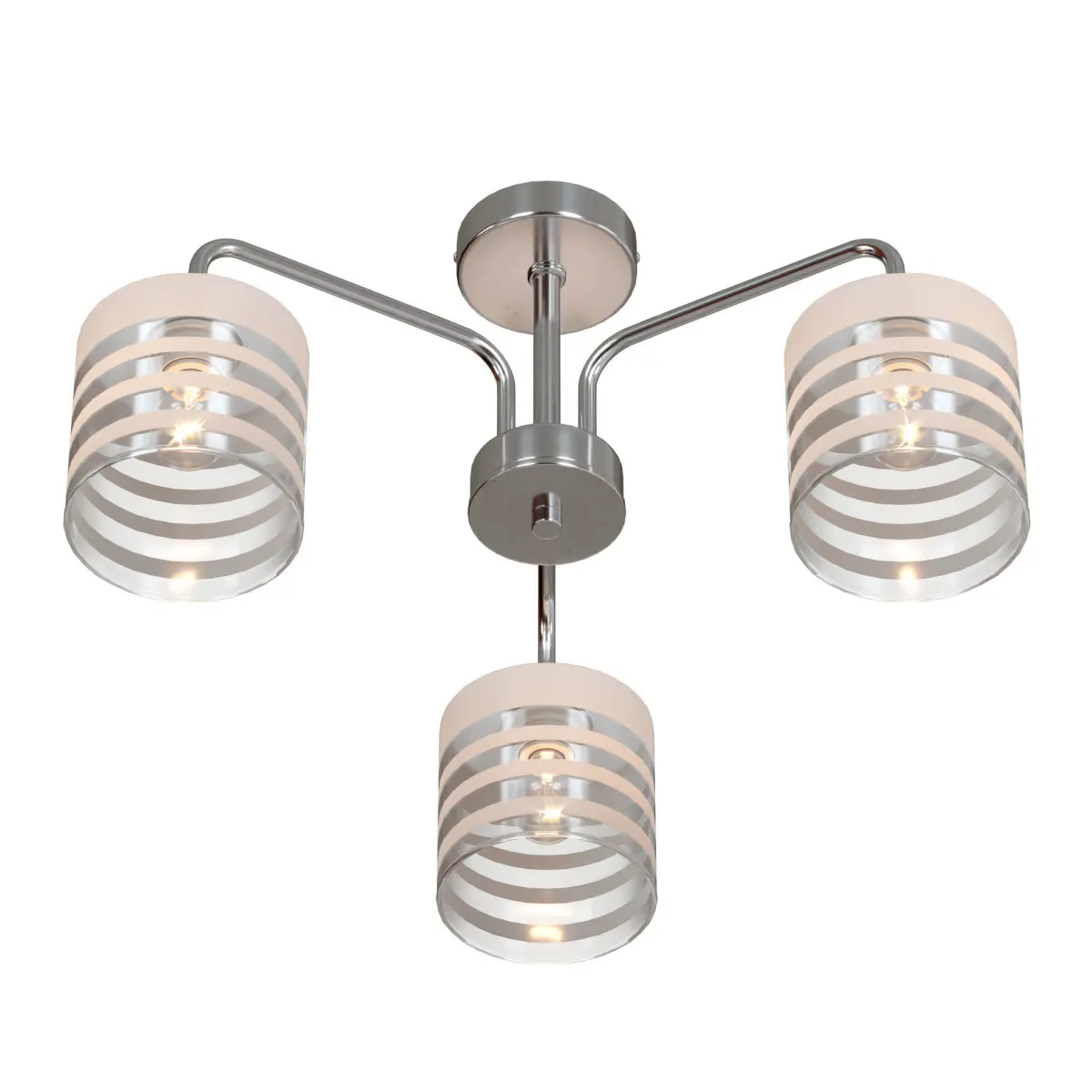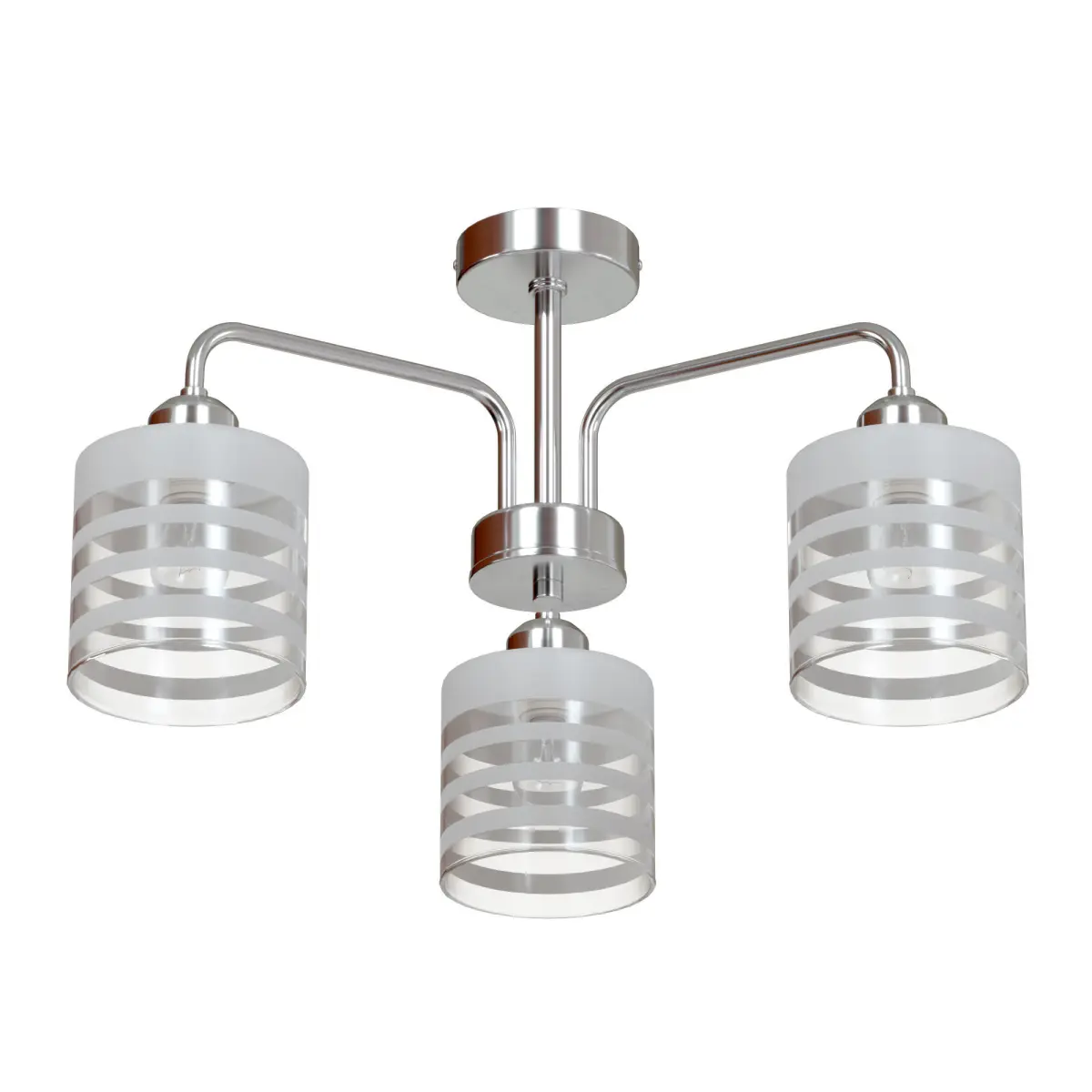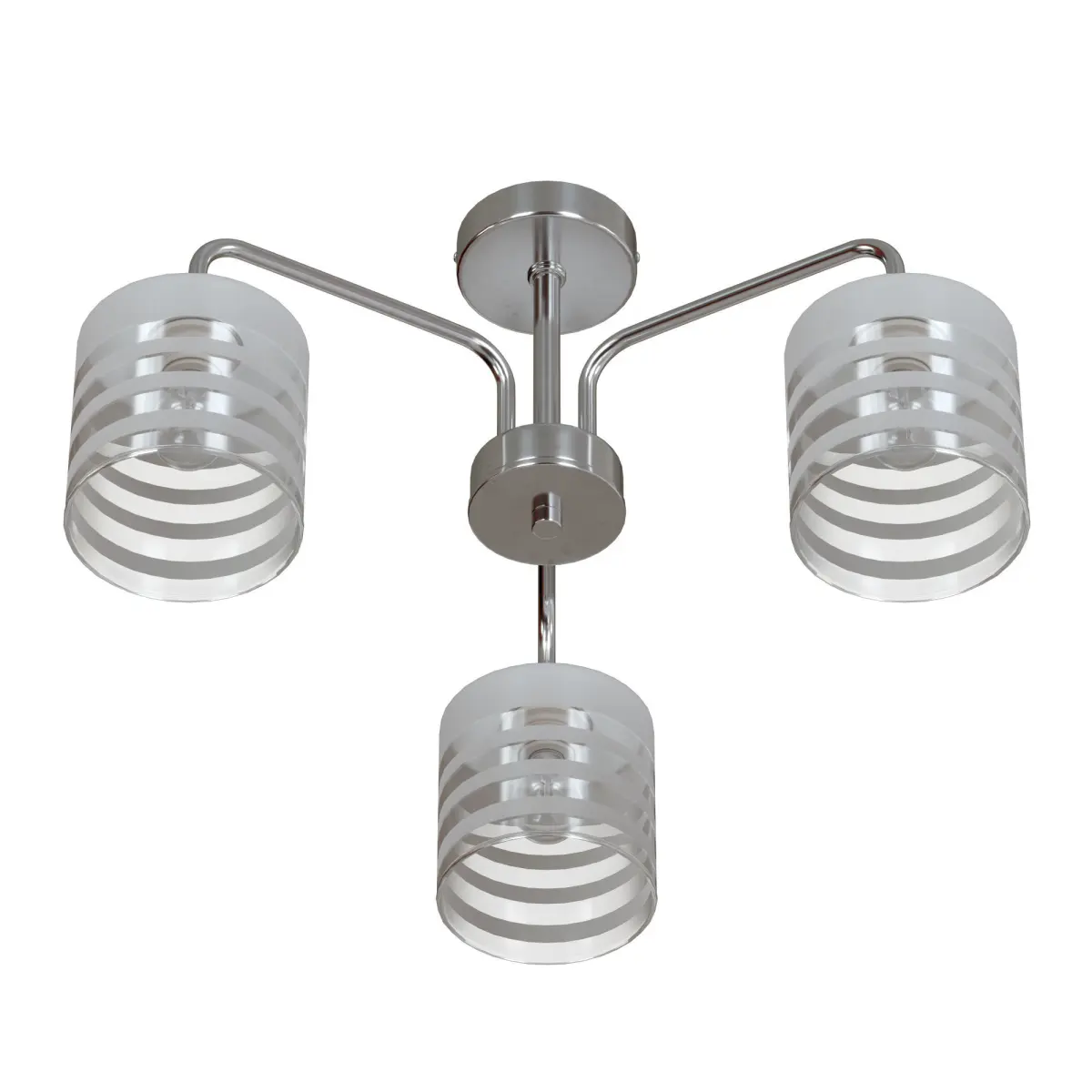 The refined model 30176/3 chrome from the Russian company Eurosvet belongs to the Essence collection and is perfect for installation on the low ceiling of a hallway decorated in a modern style. Ceiling chandelier Eurosvet Optima Essence 30176/3 chrome with cylindrical shades will illuminate a room with an area of 6 sq. m. The manufacturer Eurosvet recommends using an incandescent lamp with an E27 base and a power of 40 W for the device. The device is made using materials: glass and metal and can be used for a stretch ceiling. The main color of the product is chrome and transparent.