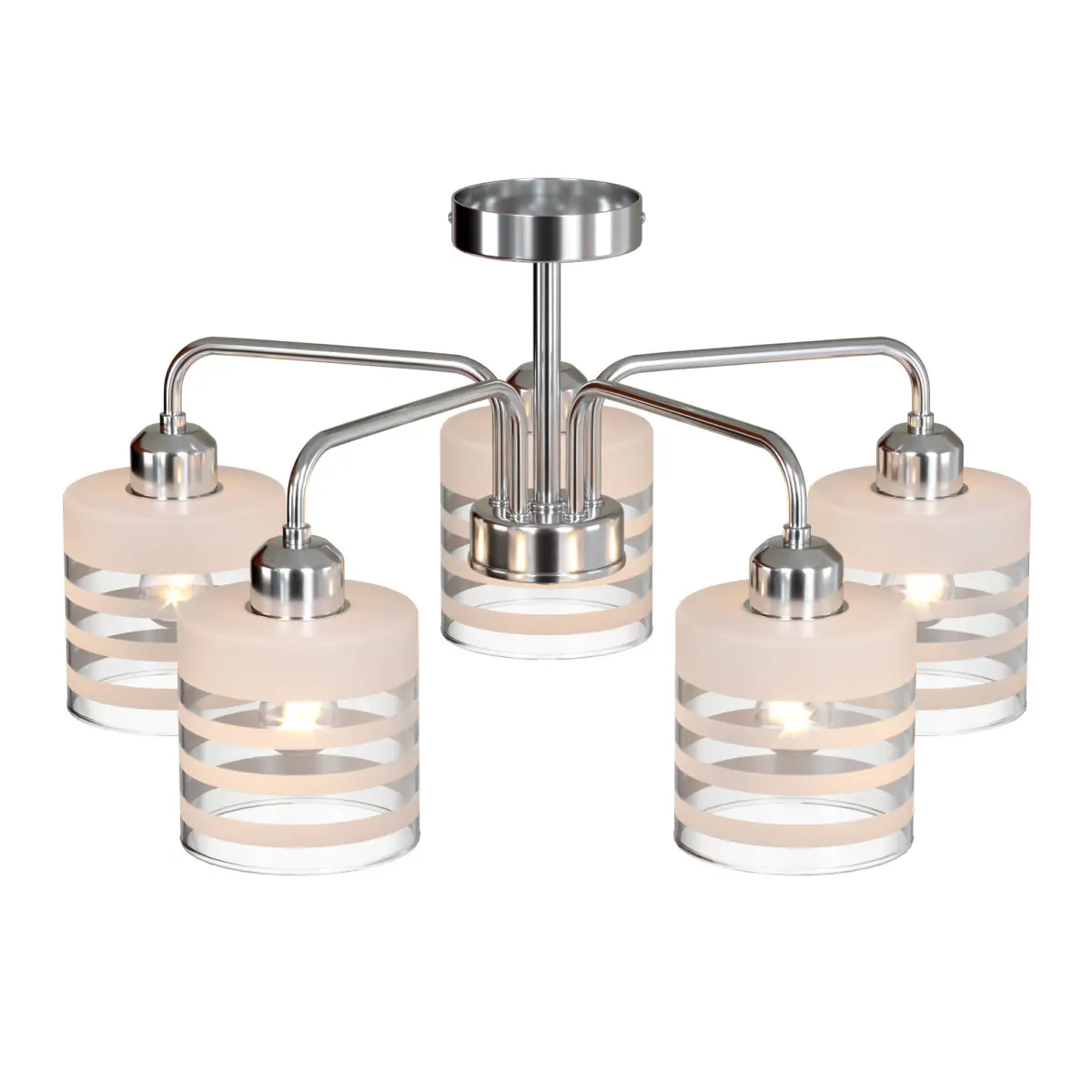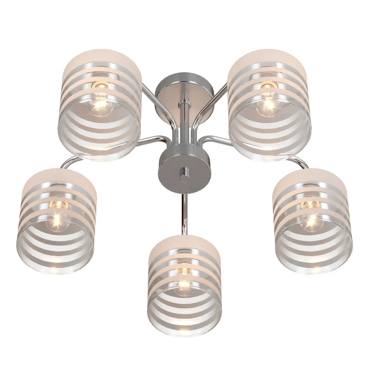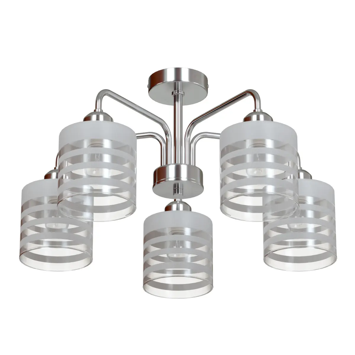 The unique model 30176/5 chrome from the Russian company Eurosvet belongs to the Essence collection and is perfect for installing on a low ceiling in a kitchen decorated in a modern style. Ceiling chandelier Eurosvet Optima Essence 30176/5 chrome with cylindrical shades will illuminate a room with an area of 10 sq. m. Manufacturer Eurosvet recommends using incandescent lamps for the device. The device is manufactured using materials: glass and metal and can be used for stretch ceilings. The main color of the product is chrome and transparent.