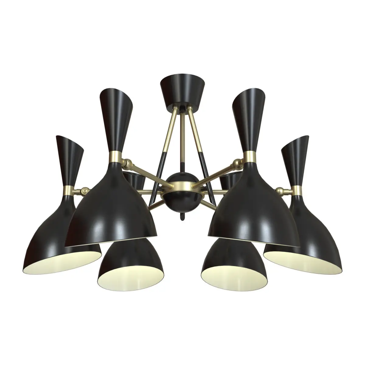 Ceiling chandelier Rasto 4665 / 6C is a model from the Italian company Odeon Light. The base of the chandelier is made of black metal, the shade is made of black metal. The chandelier will look good in the living room, cafe, kitchen, office and will successfully fit into the interior in the modern style. The model has 6 shades and 6 bulbs and is designed to illuminate an area of up to 18 sq. m. Model diameter - 71.3 cm. Degree of protection against moisture and dust - IP20.