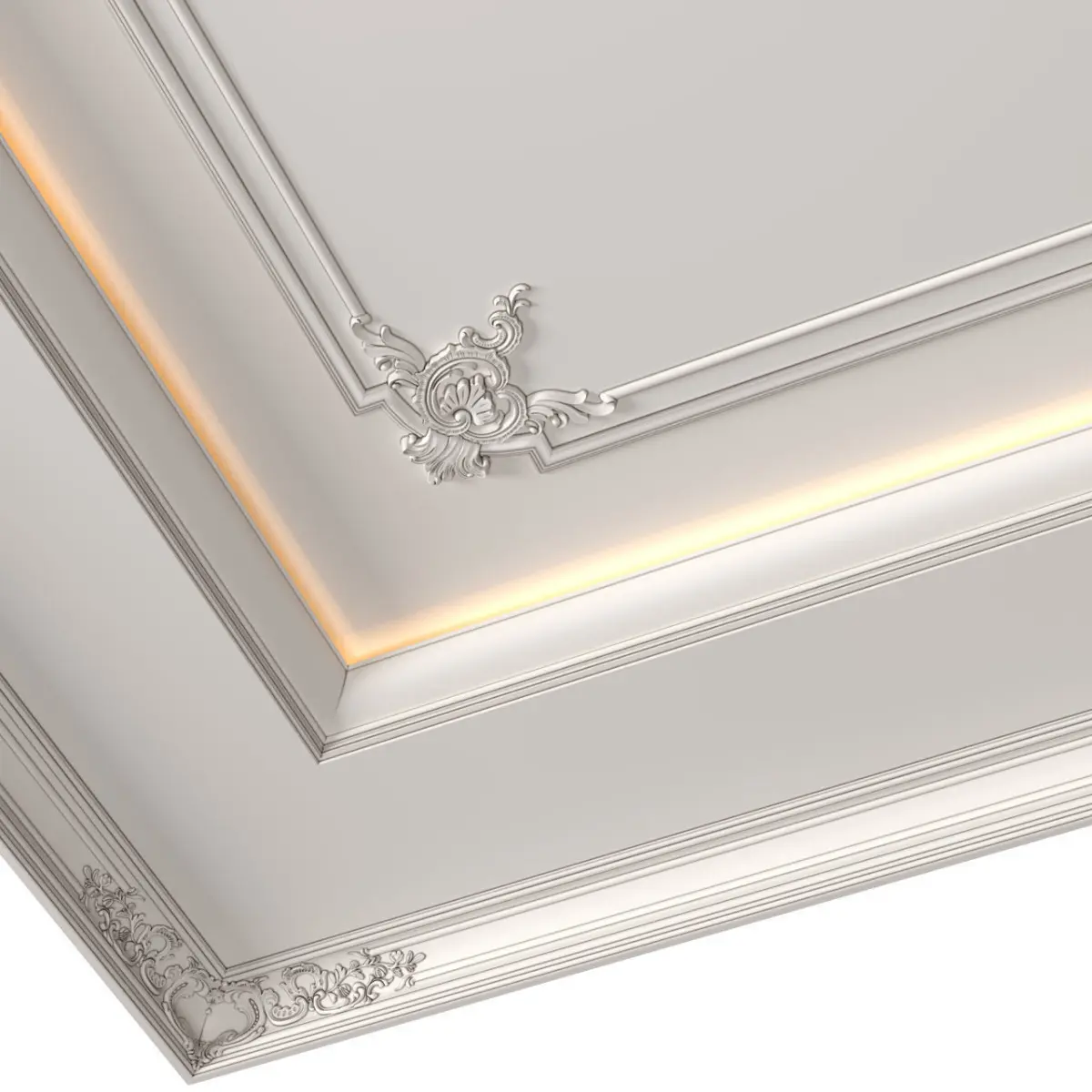 Modern classic coffered ceiling in white with backlightDecorative Ceiling coffers TileCeiling setCoffers Ceiling