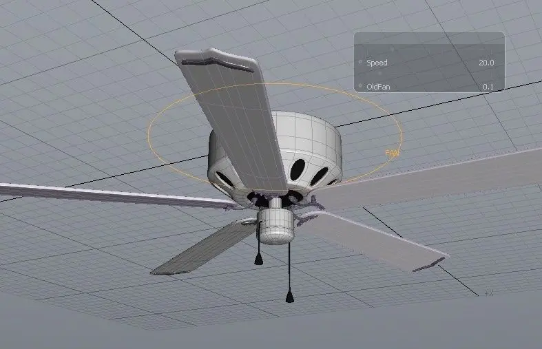 This is a typical household ceiling fan that can easily be put into any interior or architectural scene. It's a SubD model, created in modo 401 with a completed 401 rig connected for controlling the fan's speed and swinging factor labelled as, OldFAN. This adds some shake to the fan assembly as it is swinging to make it spin off balanced.