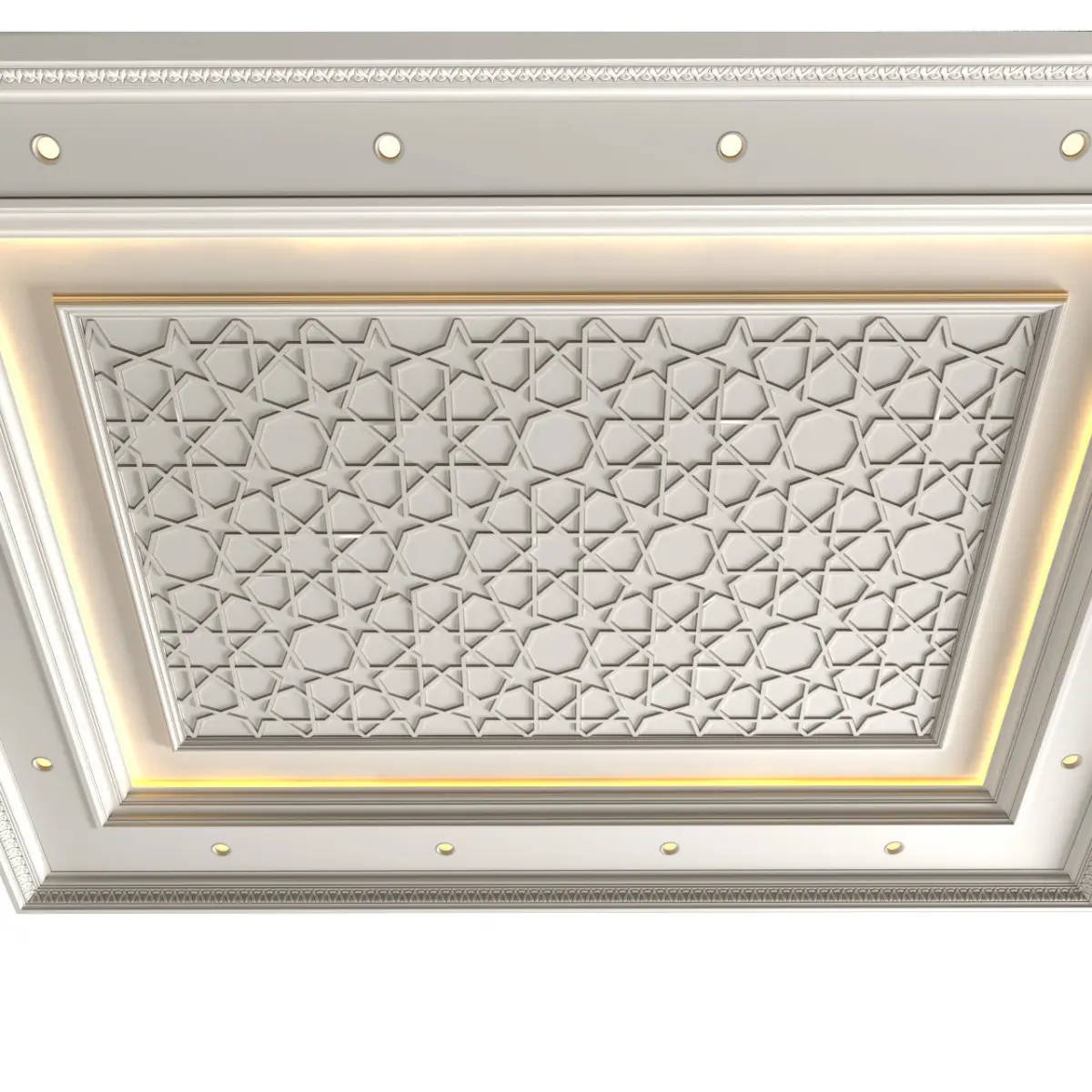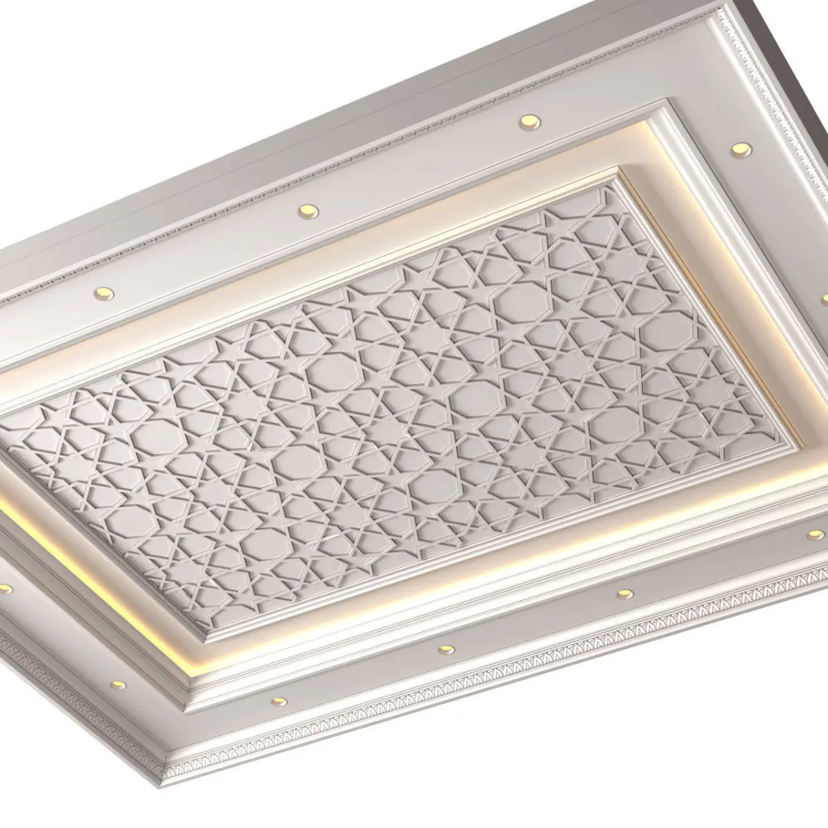 Modern oriental classic coffered ceiling in white with backlight Decorative Arabic Ceiling coffers Tile Arabic Ceiling set Coffers Ceiling