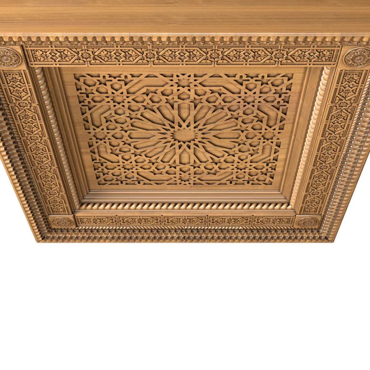 Illuminated wooden oriental coffered ceiling Arabic pattern Decorative Arabic Ceiling coffers Tile Arabic Ceiling set Coffers Ceiling Oriental coffered illuminated ceiling Islamic