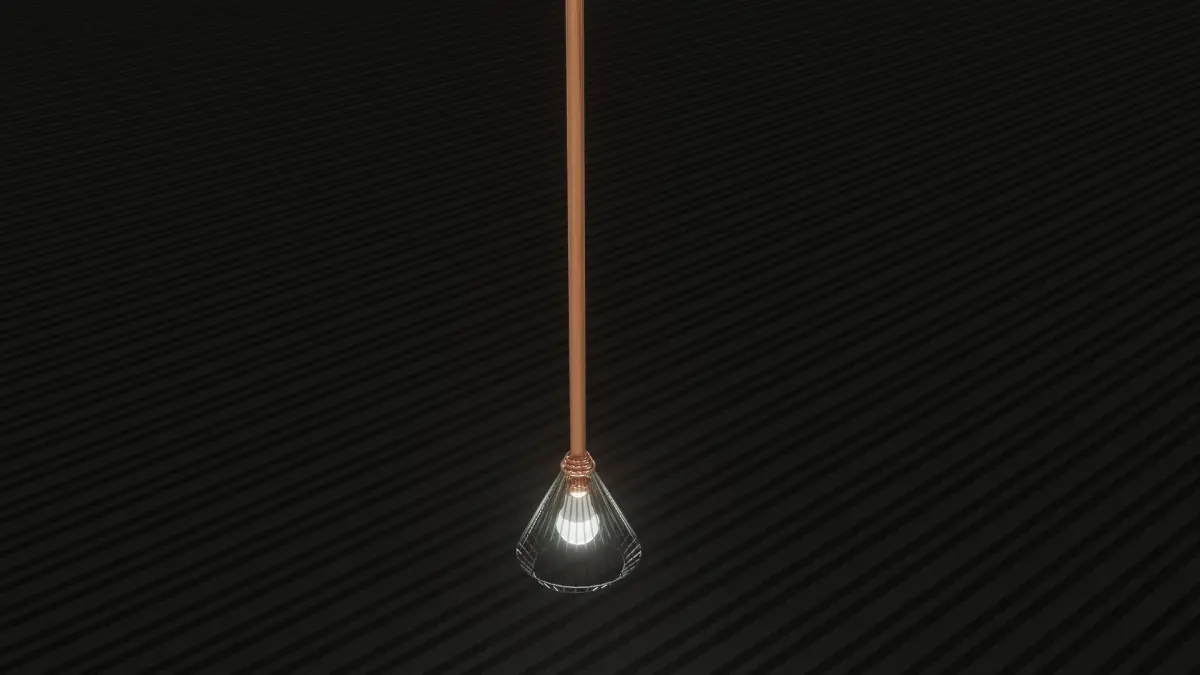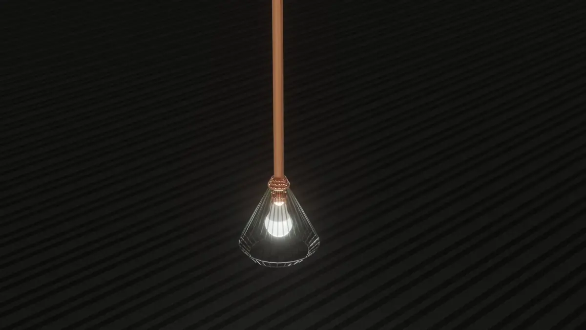 Ceiling mounted lamp (chandelier) with long rose-gold, bronze rod. For either retro (old-style) and modern artdeco homes, bedrooms. Note: the fabric on the floor is not included with the downloadable files.