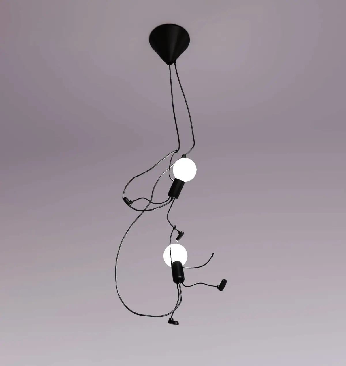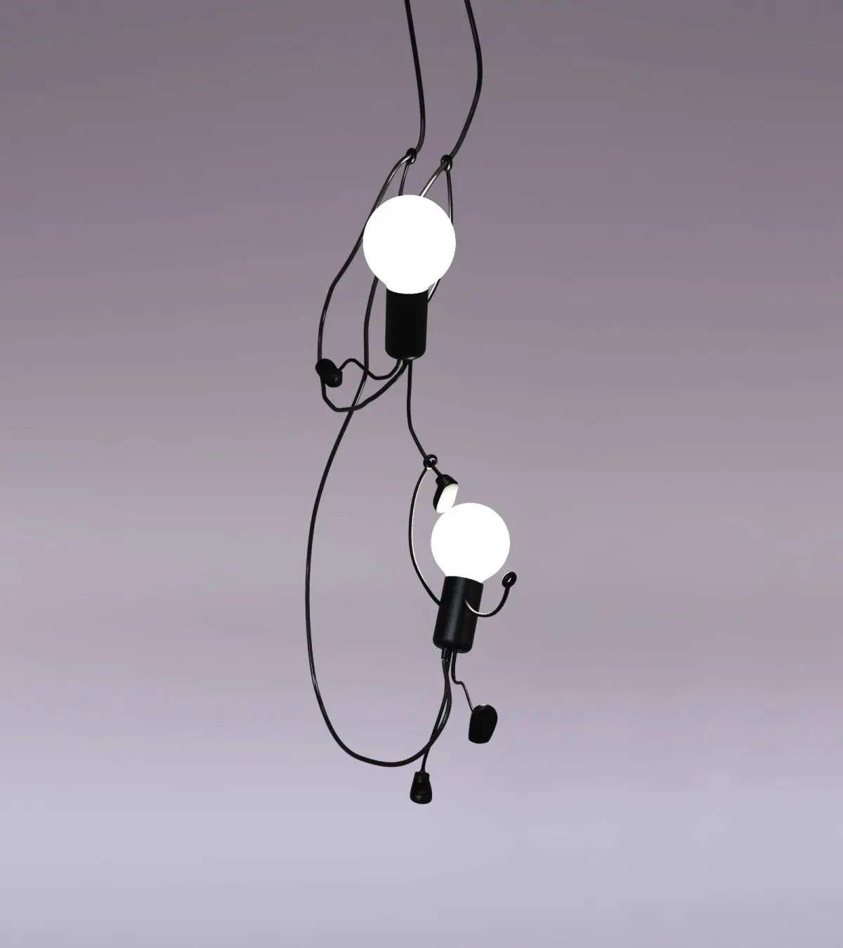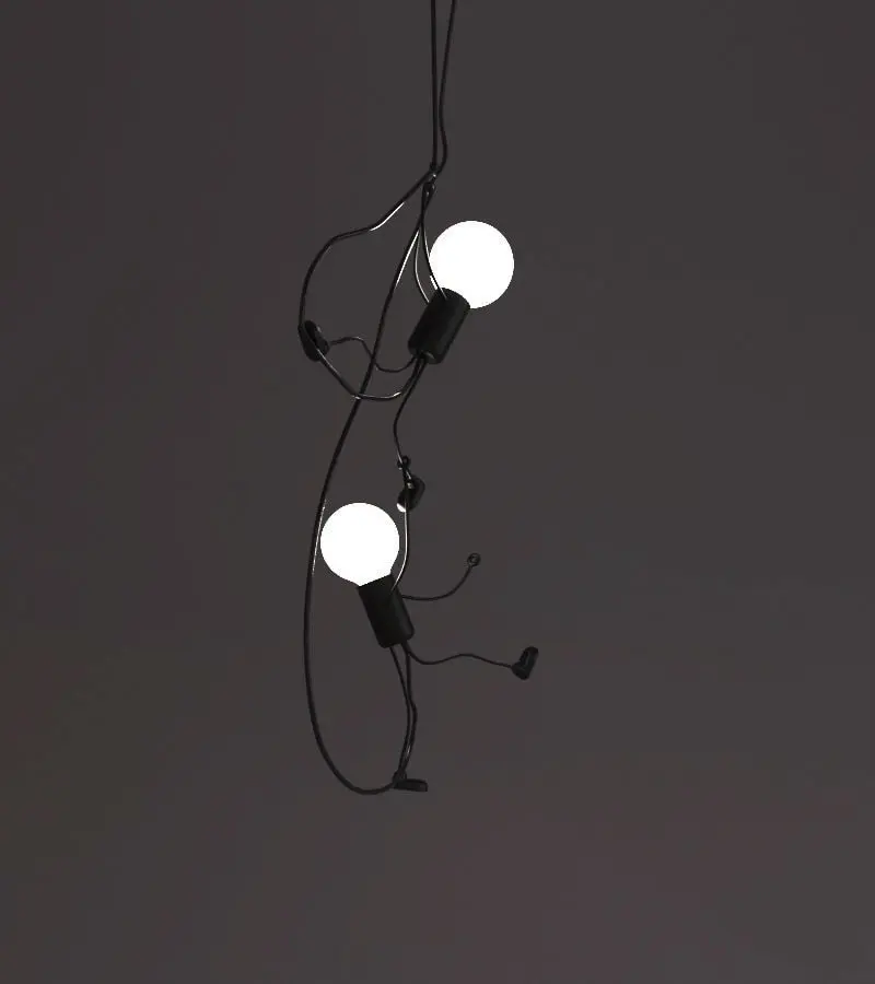 Photorealistic lamp with two hanging people.