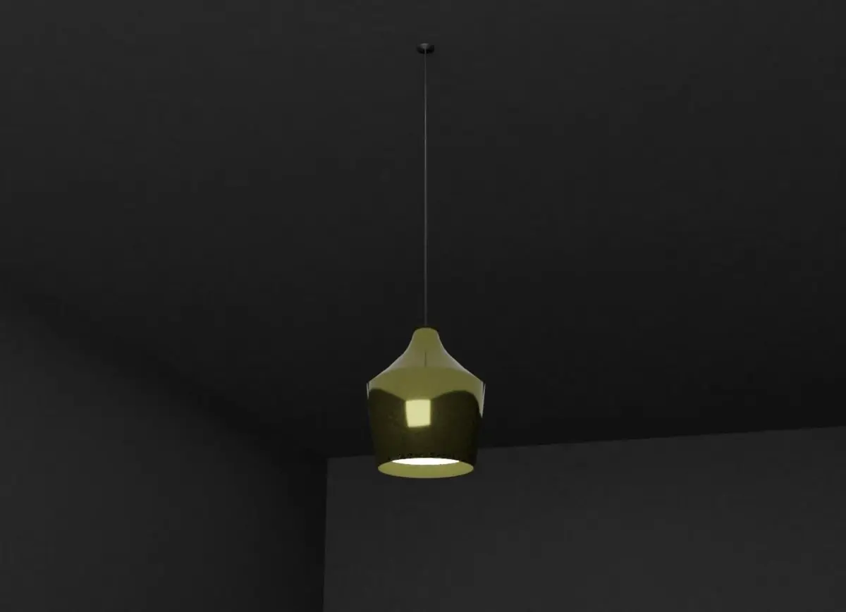 Very simple and sleek modern ceiling lamp. Smooth metallic finish of the dome, simple black low roughness cord. Created in blender, rendered with cycles. Available in obj, blender, fbx files.