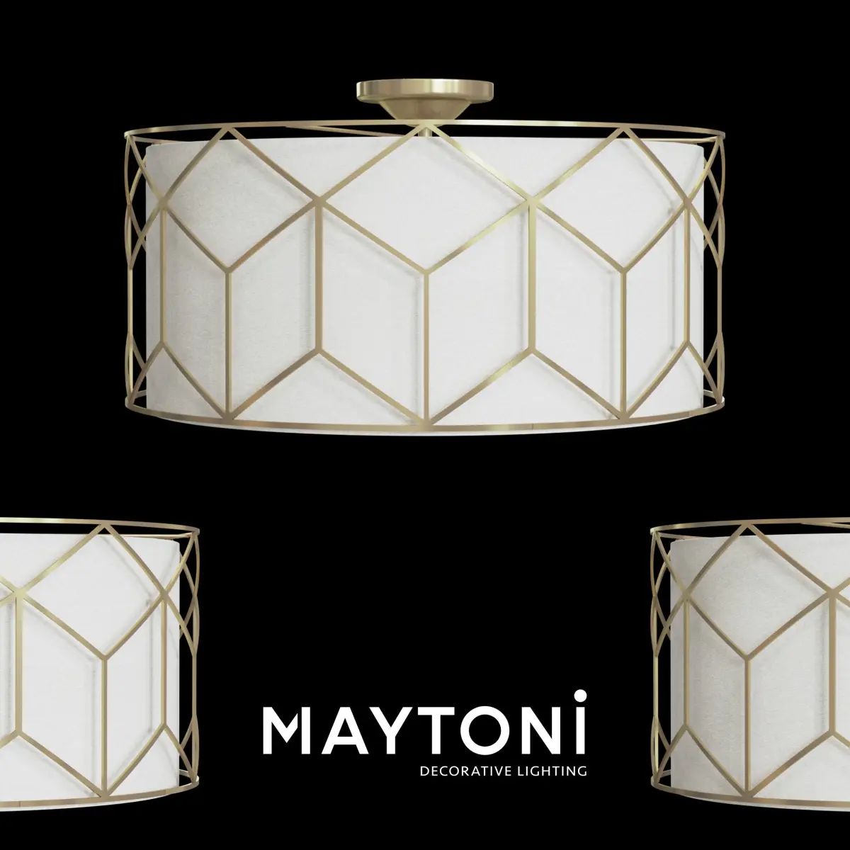 Ceiling lamp H223-PL-03-G Maytoni Classic free 3d model Metal frame. Use of stencil pattern. PVC lampshade covered with linen.Metallrahmen mit Schablonenmuster. PVC-Lampenschirm mit Leinenbezug.