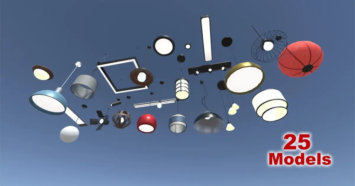 Great collection of 25 lowpoly ceiling lamps originally created for Unity. There are all kind of sizes and materials. Spotlights and fluorescents also included. All this range of lamps will be very useful to set up interior scenes. There are also the FBX models included separately, textures included, to be used in other 3D apps. All the models are low-poly to be used in games and applications.