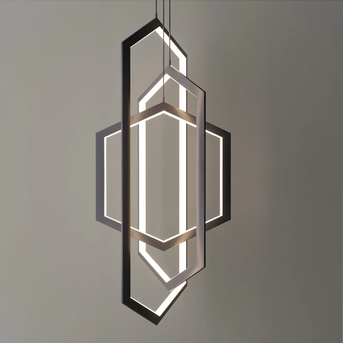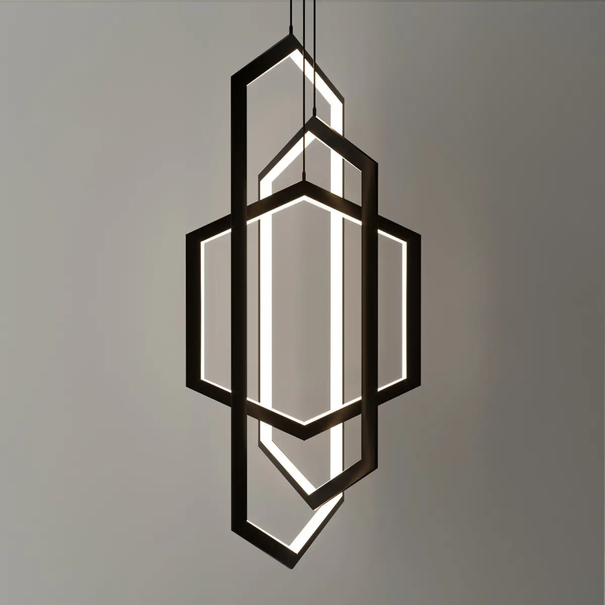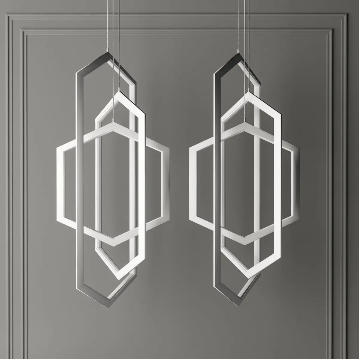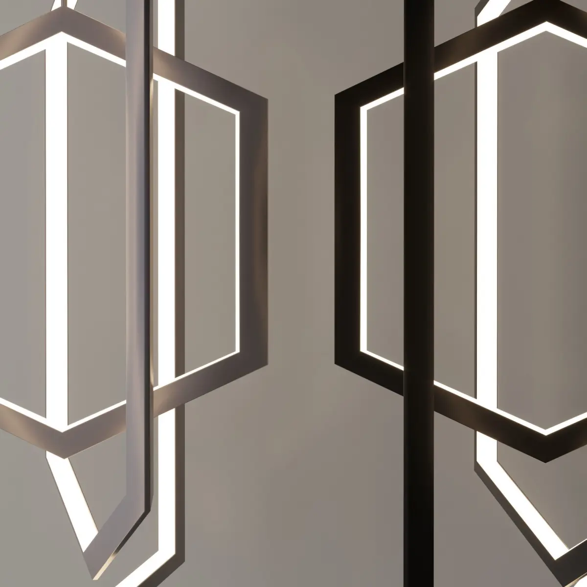 Orbital rings and hexagonal cloud pattern. Comprised of three elongated hexagon rings, each ring is suspended vertically from a single point.
