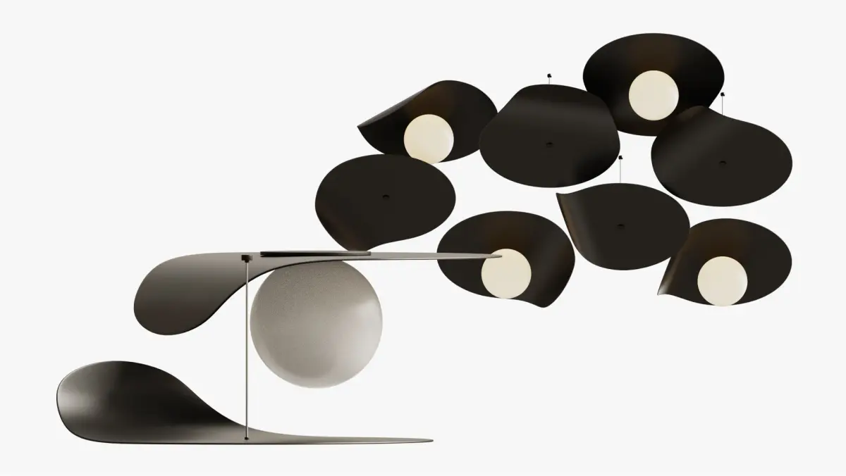 Discover the ceiling lamp of the Flow collection, black finish, designed by Chris Basias for the famous Italian house Kdln.Like the leaves of a tree carried by the wind, the metal disc of the lamp imitates its shape. With or without light, the compositional elements can be combined to create evocative installations. Playing with light and shadow, Flow reproduces the dance of nature on a windy day.