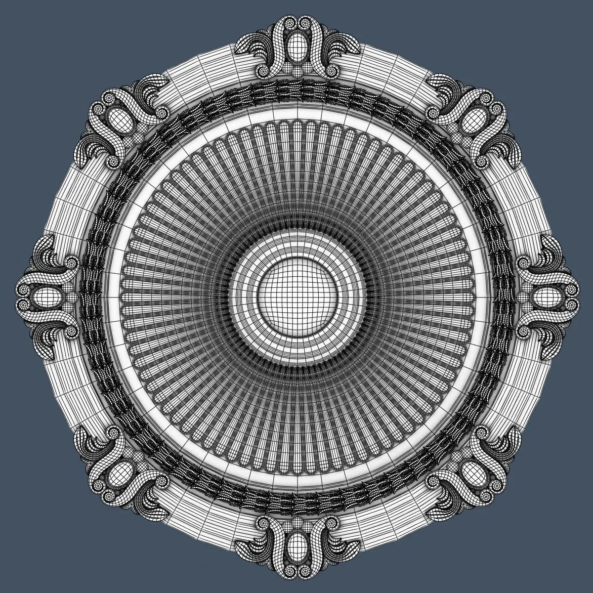 Model contains only tris and quads, with good clean topology.Model is 50cm (19.68 inches) in diameter.Topology is set up so that model can be used without subdividing/smoothing as a background element.In case the model is to be used as the center piece of your render it can be subdivided/smoothed without any changes in its silhouette.