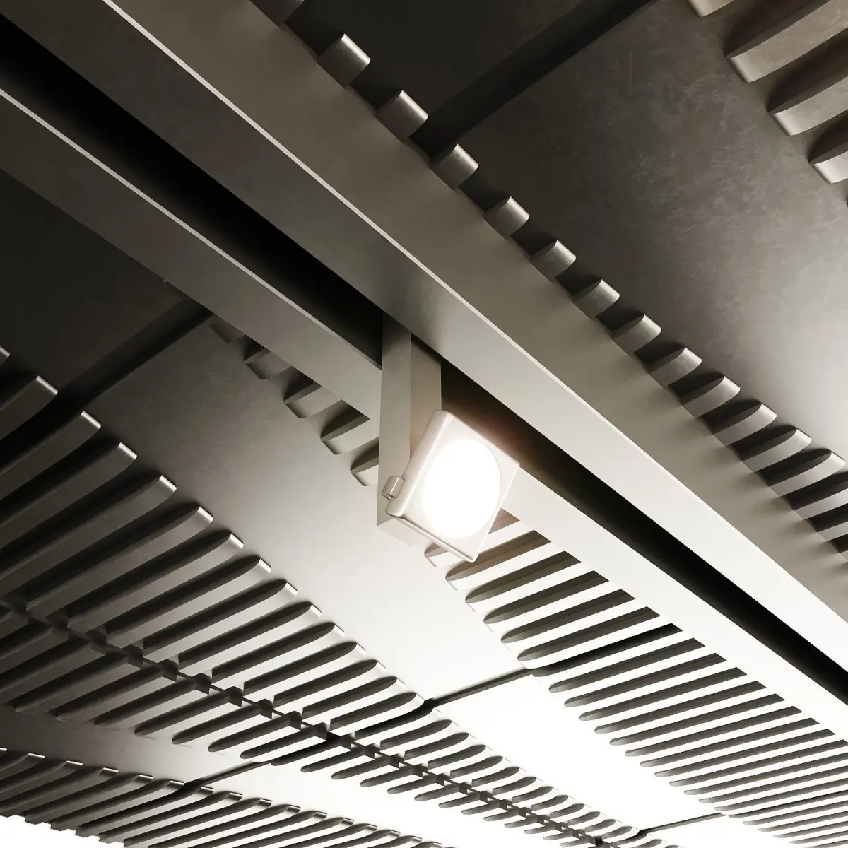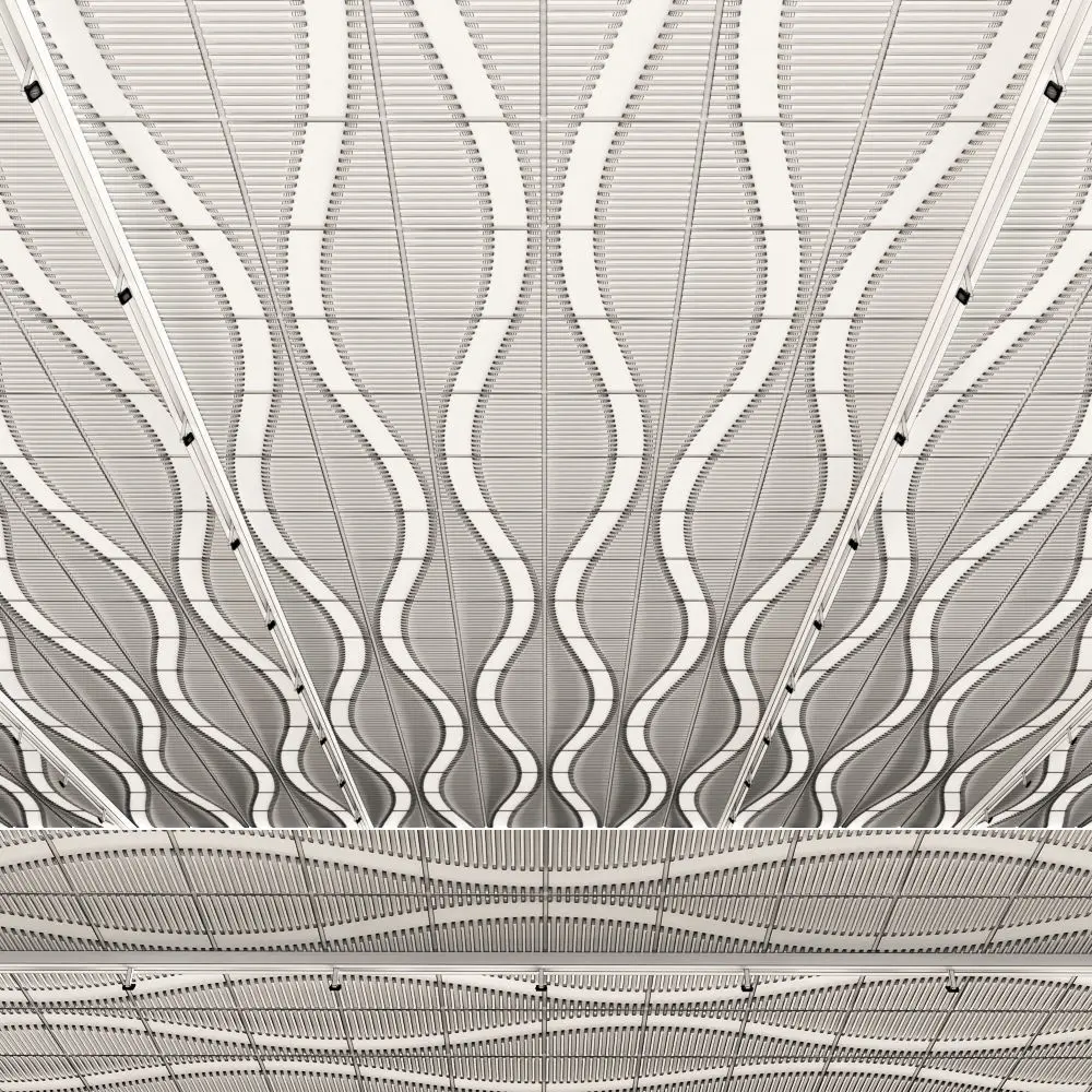 ART Ceiling panelA panel with a large active wave that visually hides the square structure of the suspension system. The drawing is noticeable, setting the tone for the entire interior, but at the same time quite restrained.