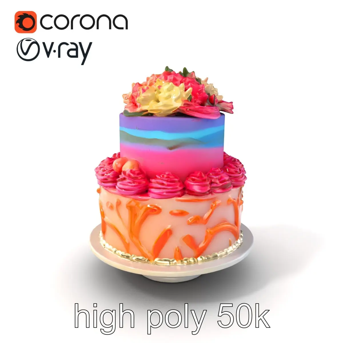 Each model has 3 levels of detail: low-poly, middle-poly, and high-poly, which allows for the use of this model in production rendering (such as 3ds max, Maya, Cinema4d, Blender, Vray/Corona/Cycles and all others), game engines (Unity and Unreal compatible), and interactive presentations, providing a choice of detail based on the LOD System principle. Ideal for virtual catering showcases, digital celebrations, and visual merchandising. The model's textures are PBR, Diffuse, NormalMap, and reflection/roughness/metallic, suitable for any modern rendering engine. All models are accurately unwrapped with no overlapping UV. All textures are 4096*4096 in size. Please like and leave a comment if you enjoyed the model.
