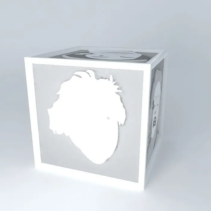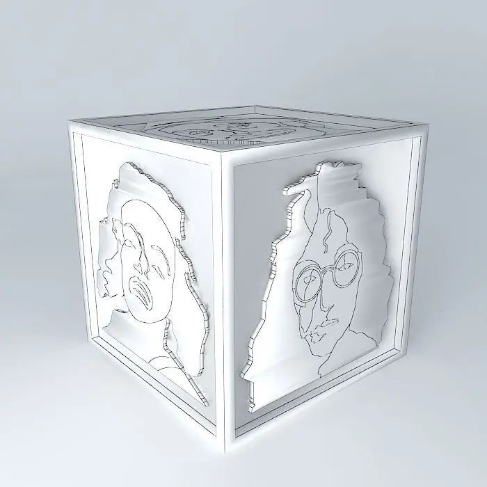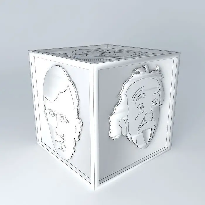 This 3D model was originally created with Sketchup 13 and then converted to all other 3D formats. Native format is .skp 3dsmax scene is 3ds Max 2016 version, rendered with Vray 3.00 Transparent cube in gray tones with historical famous characters. six characters: Hitler, Einstein, Marilyn, madruga, lennon, guevara