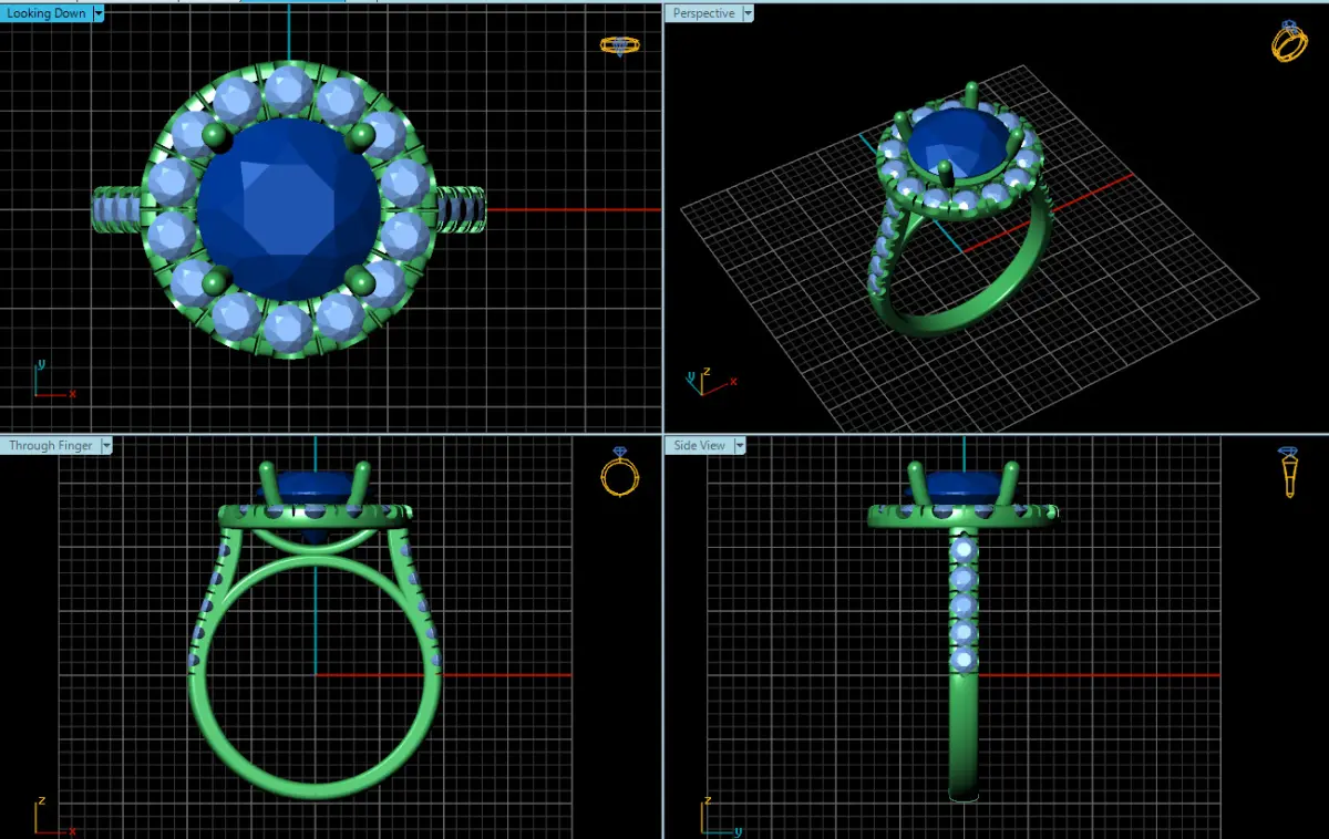 Adding to the ring's grandeur is the diamond-adorned shank. The band is embellished with small, round diamonds, continuing the theme of brilliance and sparkle. The diamonds are set in a pave or channel setting, creating a continuous line of light that extends down the shank.