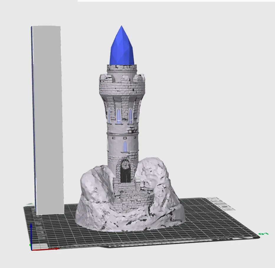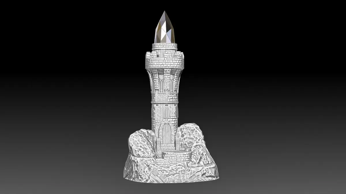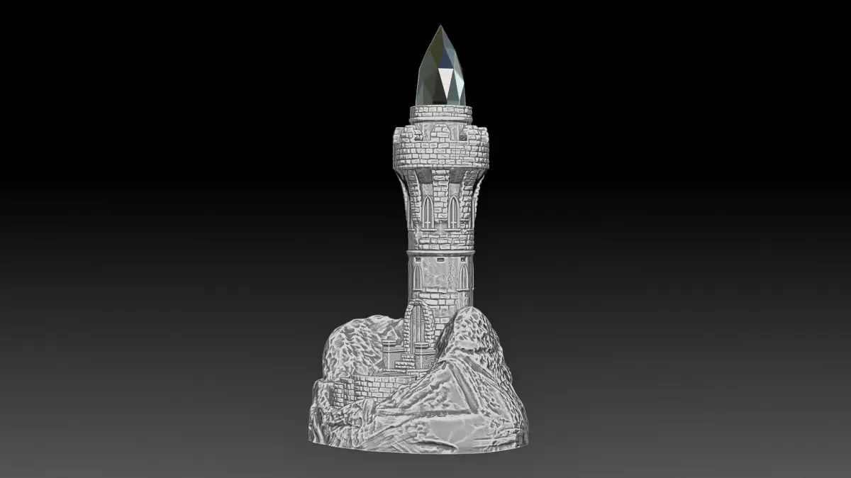 Immerse yourself in a magical world with this unique 3D printable model of a castle situated on a steep cliff! This castle features a tall tower and a majestic crystal at its peak, making it a stunning addition to any decor, tabletop game, or diorama.