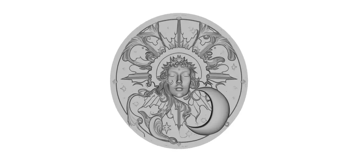 This celestial goddess medallion 3D model is a finely detailed sculpt inspired by cosmic and mythological symbolism. Featuring a serene female face, flowing ornamental elements, stars, and a crescent moon within a circular medallion form, the model is ideal for luxury pendants, spiritual jewelry, artistic medallions, and enamel or diamond-set designs. Perfect for jewelers, and manufacturers looking to create timeless celestial-themed jewelry with depth, balance, and elegance.
