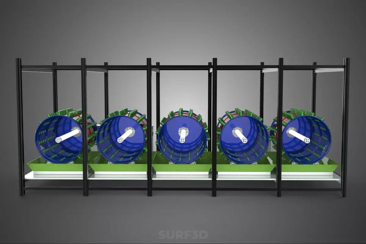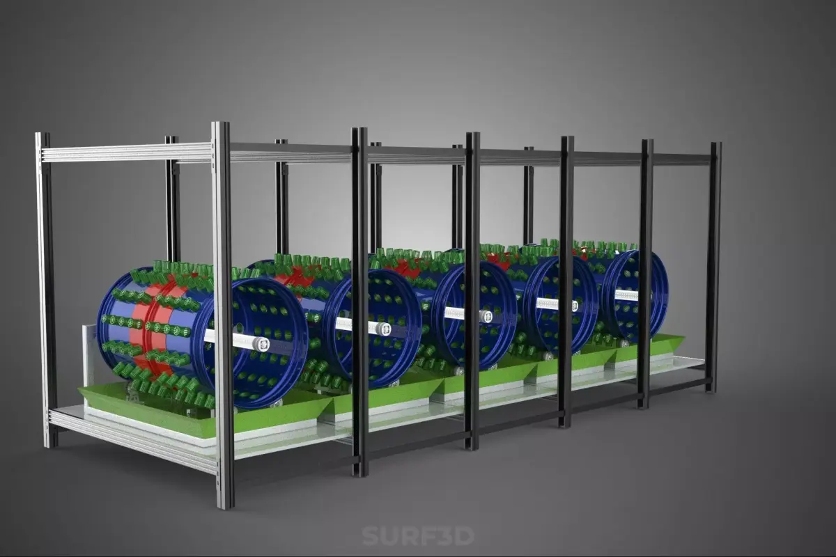 At its core, this system is a type of vertical farm employing a distinct rotary mechanism. Plants are typically housed in individual cells or small containers, which are then secured into trays or specialized holders. These trays, in turn, are mounted circumferentially around the interior or exterior of a large, drum-like structure. This entire rotating assembly forms the drum rotary component. The drum is supported within a robust frame and often organized into racks or multi-tiered shelves, allowing for the stacking of multiple rotary units in rows to maximize vertical space utilization.