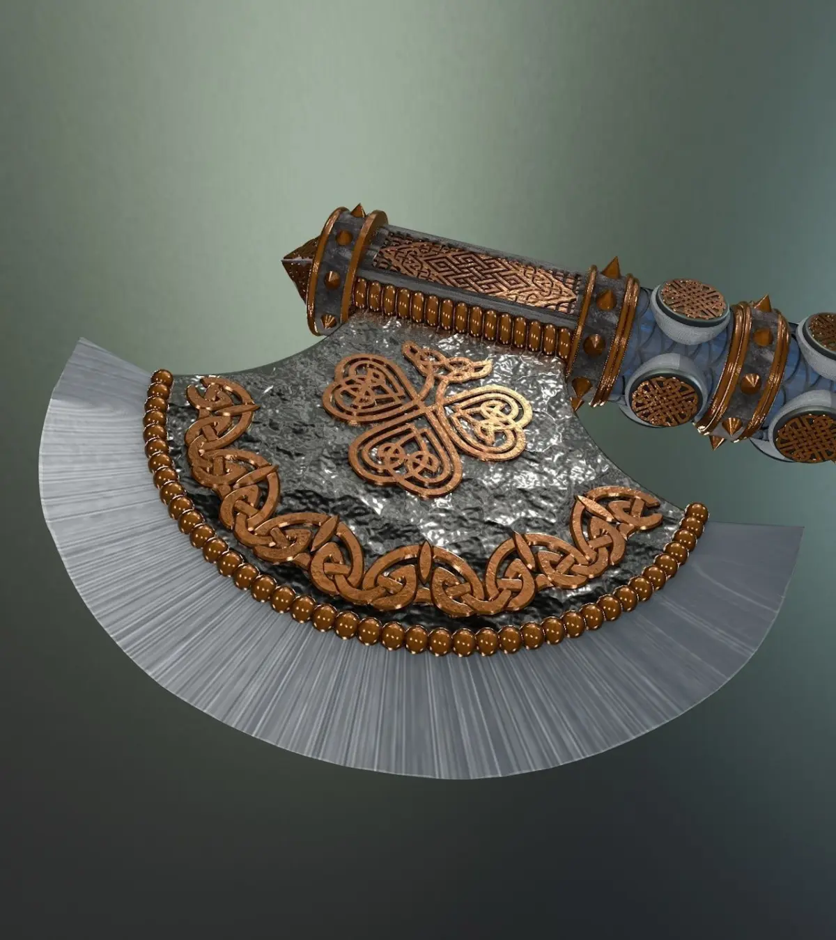 An axe created in Cinema 3D, with attention-grabbing details that you can use for personal content or projects, modeled and created with the use of various Celtic models. Enjoy it!