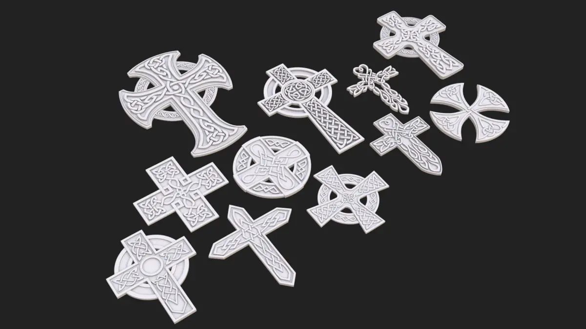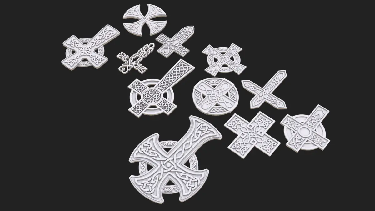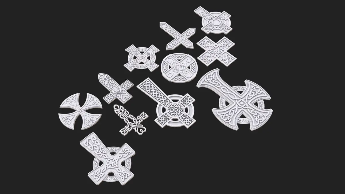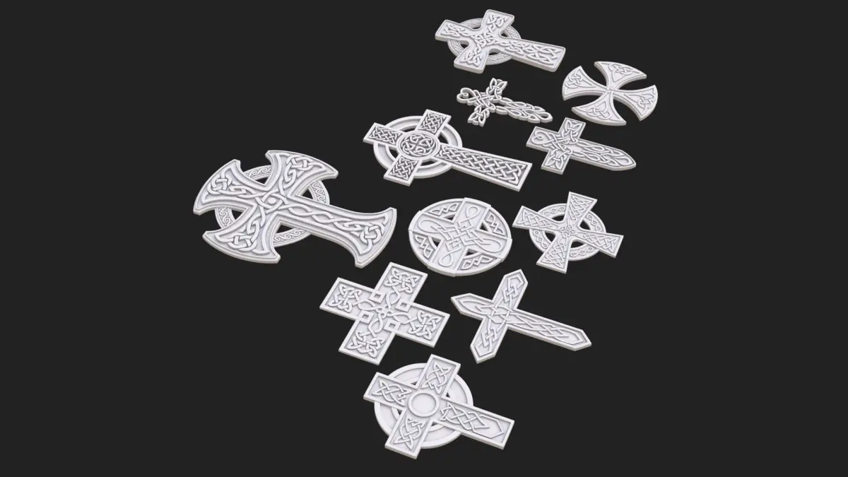 Celtic cross..No material, no texture..Vray 3.60.03..3ds max 2018..FBX..OBJ..Subdivision0 - polys: 37583, verts: 41325..Subdivision1 - polys: 146674, verts: 156978..Subdivision2 - polys: 586696, verts: 606466..