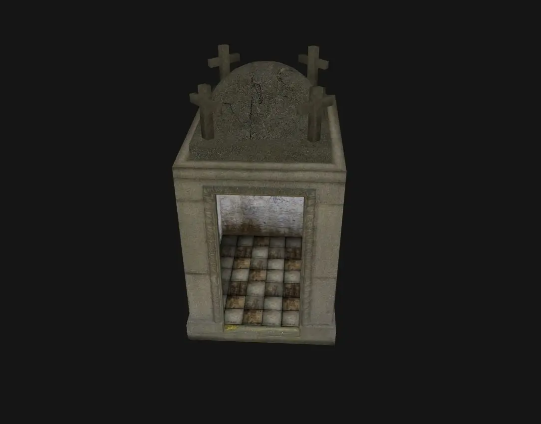 A mausoleum with a rusted metal door for games or any rendering scenes. The door is not animated but is ready for that. The archives contains:models 3d in format fbx, 3ds and objtextures in format dds and jpg in 2048 size