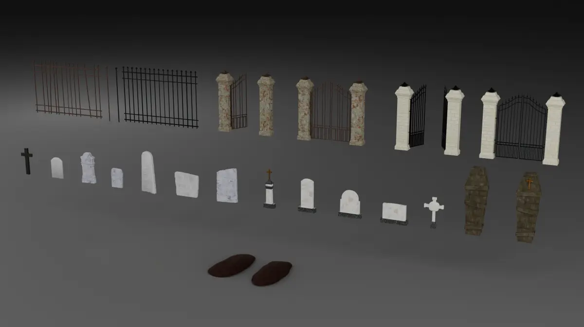 The Сollection Сontains 12 Types Of Gravestones, 2 Types Of Wooden Coffins, Old And New Gates, Fences.
