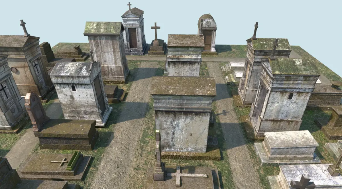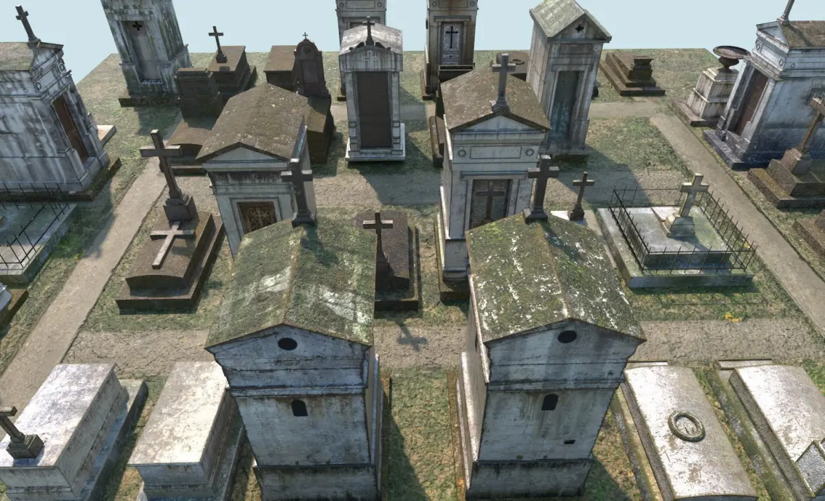 Model of A Cemetery. Model is very realistic. It has 14 PBR material. Maps are diffuse-specular-glossiness-height and normal. Model's textures has two sizes; 4096x4096-2048x2048. All maps are JPG formats and unwrapped, non-overlapping.