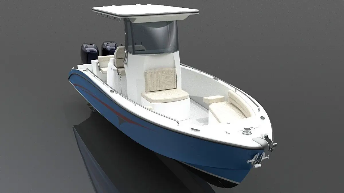 This is a high-quality 3D model of a 9-meter center console fishing boat, optimized for use in visualizations, simulations, and marine product presentations. Designed with attention to detail and realistic proportions, this model represents a modern sport fishing vessel commonly used in coastal and offshore environments.