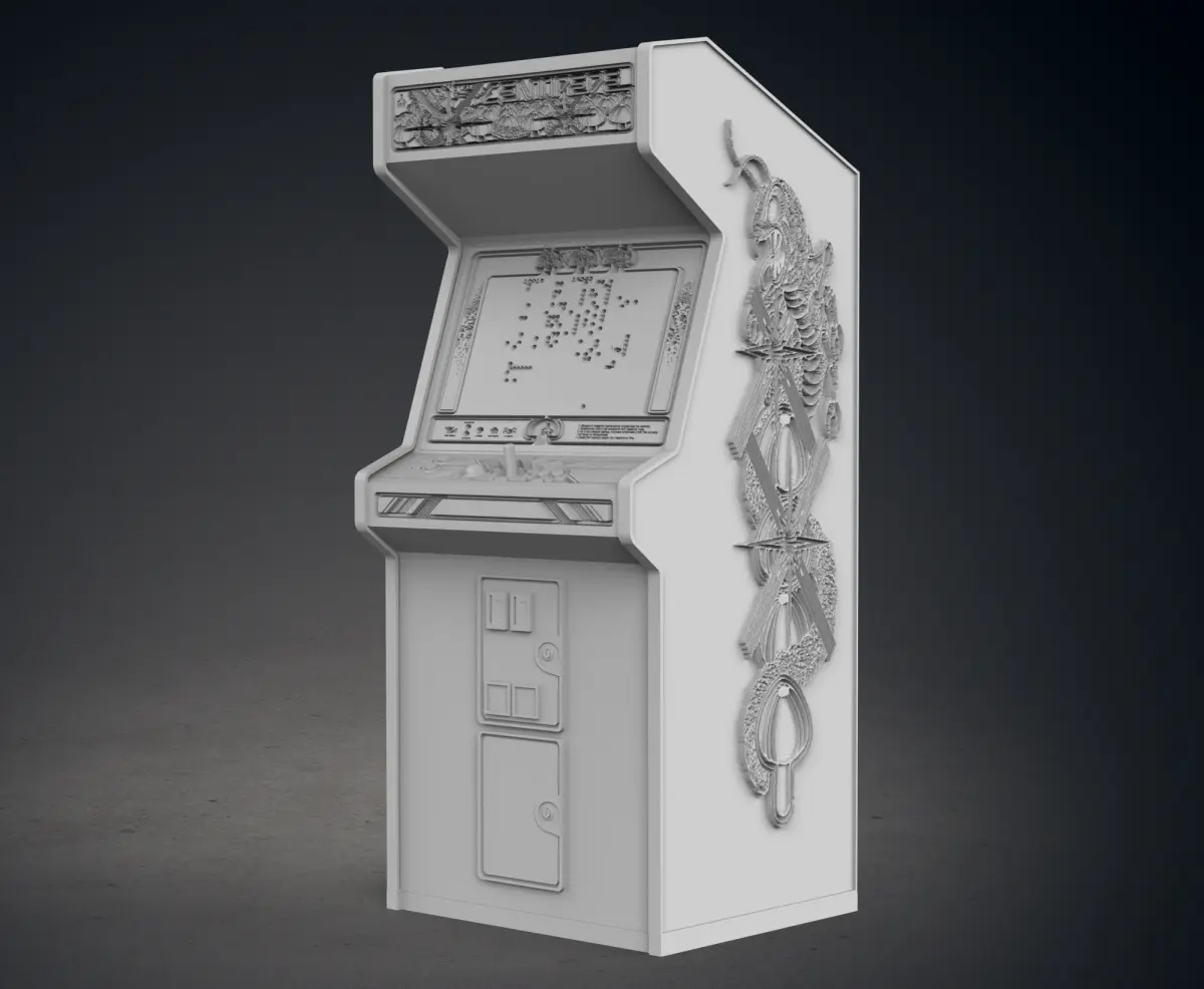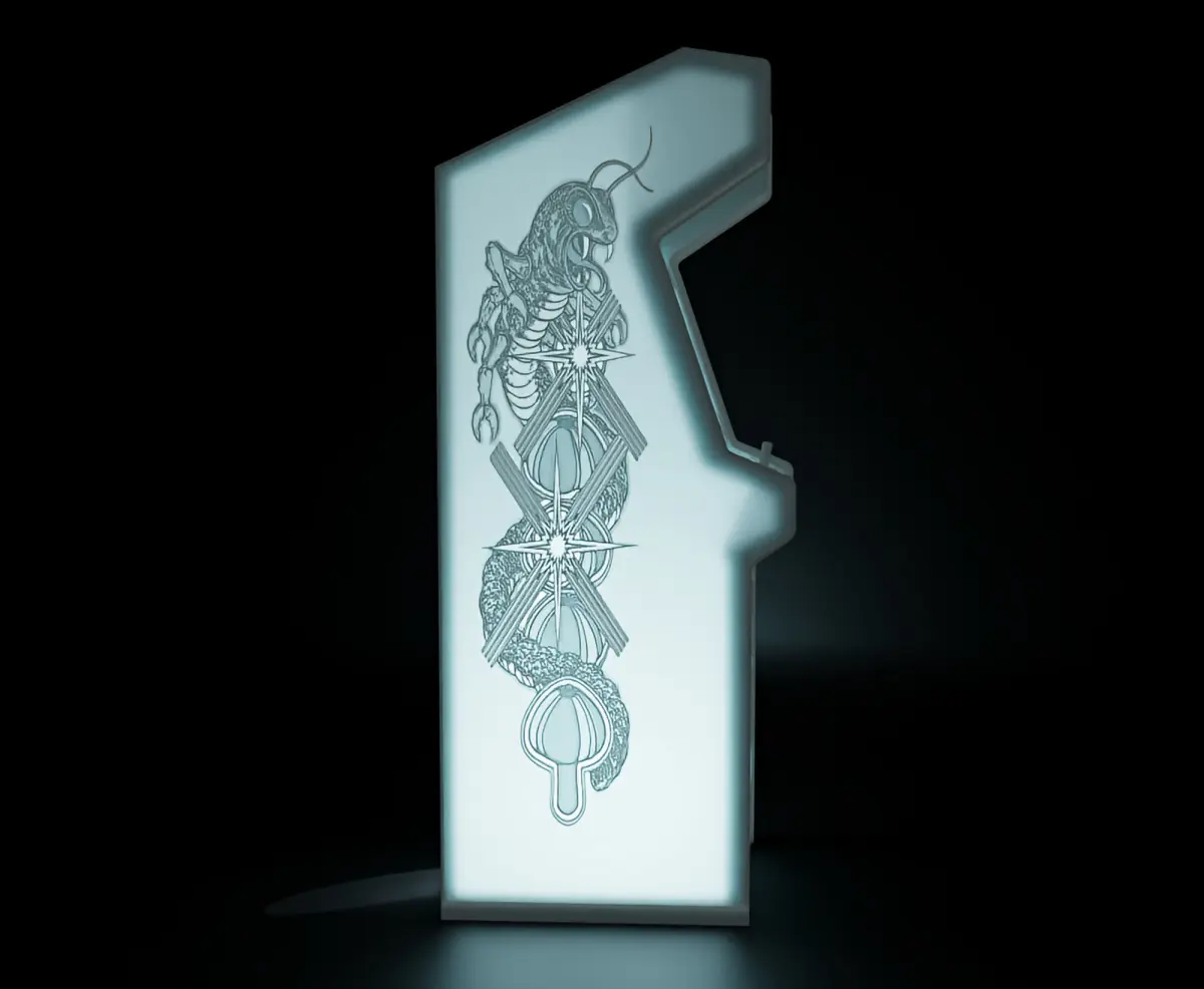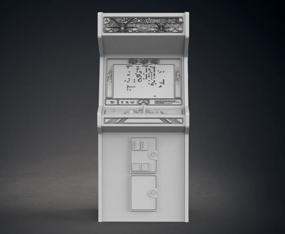 This piece is representative of a themed Centipede Arcade Cabinet.